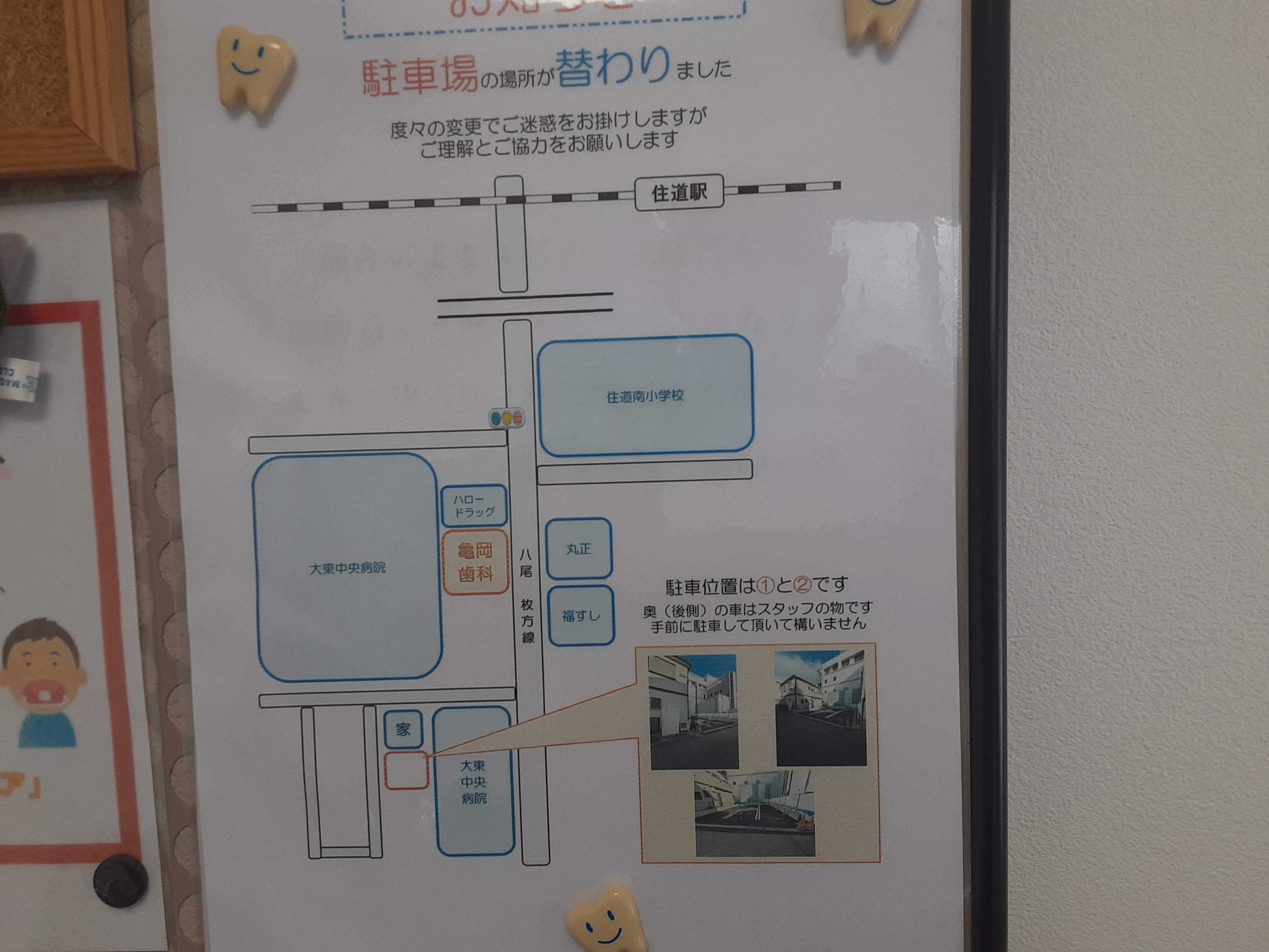 また変更?・・・二ヶ月程度の間隔をあけて、定期的に通っている歯科医さん。今日も予約日なのでスーパーカブで出かけてきた。自転車・バイク置き場は歯科医院の前にあるので、予約以外の緊急治療患者がない限り殆ど問題はない。でも、時々強風・大雨・寒波などで通院がつらいときには軽トラも使う感じ。予約時刻の少し前にスーパーカブを停めて院内に入ると見慣れぬポスターが目に入った。駐車場の場所が変わりました。とある。え?また変わるの?というのもこの1年ほどの間に4回目の移転だからだ。受付の方に聞いてみたら、お隣の病院拡張の為に駐車場スペースが減少。近くの商店なども一緒に締め出されたようだ。それから場つなぎ的に建築現場や餃子店などの空きスペースを借りてたみたい。転々としたけれど、今回の駐車場で落ち着くのかな?もうひとう気になったポスター・・・それは、花粉症の治療薬シダキュアを使用しながら外科的な歯科治療と組み合わさると、強いアレルギー反応が起こる可能性があるということ。ハウスダスト・ダニアレルギー治療薬使用中の方も注意が必要だそうです。私は花粉が避けて通るみたいですが、妻は毎年この時期がつらそうなので、この薬を飲んでいるかもしれませんので帰宅したら確認することに。