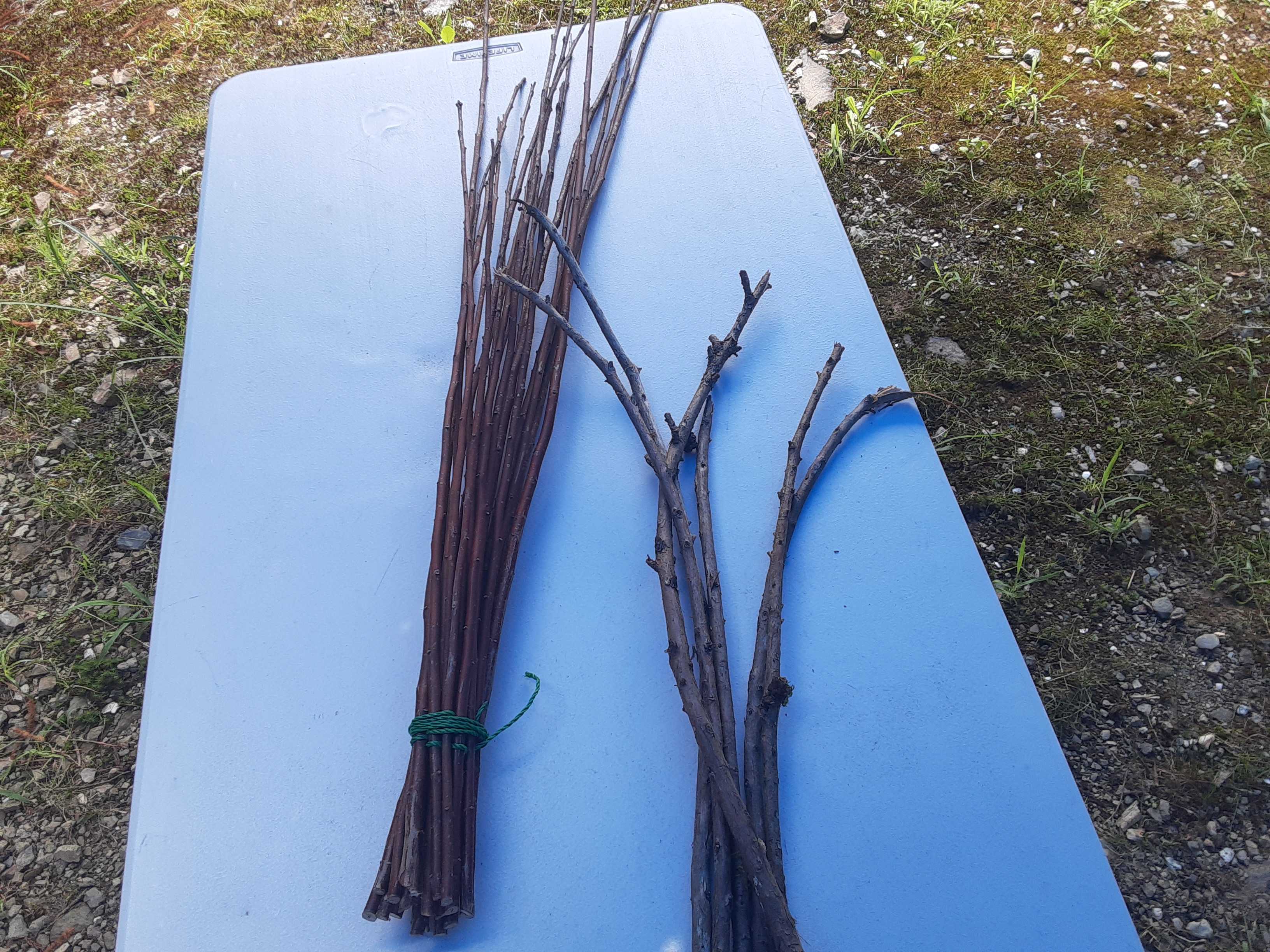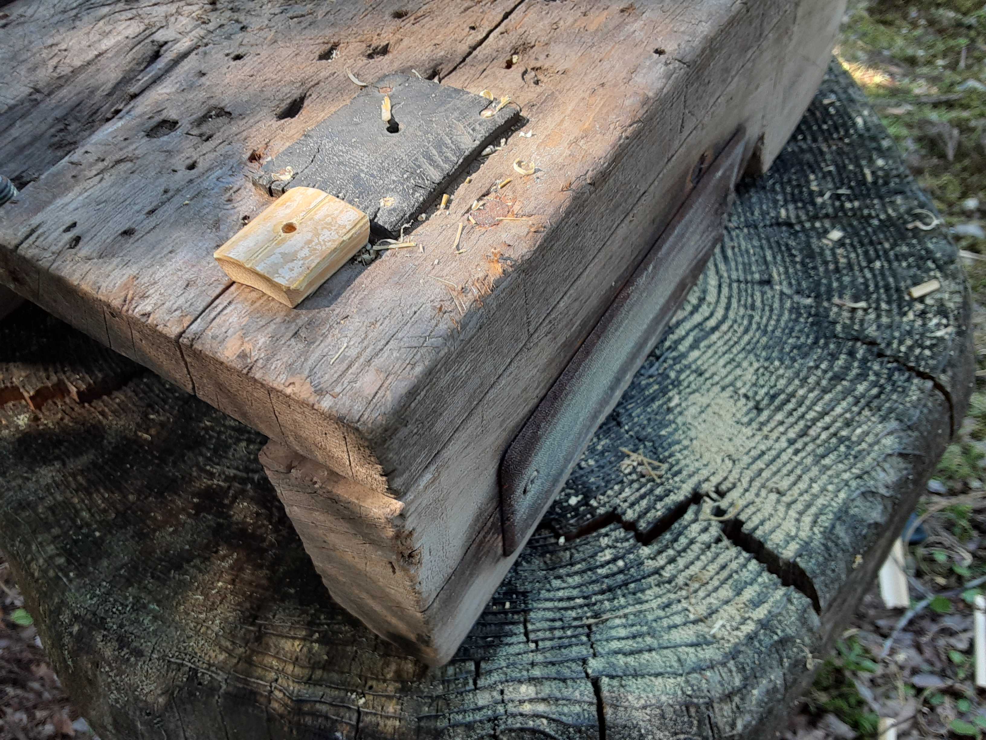 出来るだけ急ぐんだ!今日の作業は、竹の玩具作り。材料になる竹や、工作台・道具類などなど、自宅と濃土花にわかれて置いてあったので、帰宅するまでに出来るだけたくさん作ることと、全国大会のウホウホ保育園に忘れ物無く持っていくことが必要。工作台はこれ。30年以上前に作ったもの。サイドには金属製のヤスリ・・・ひっくり返すとV字の切り込み。竹や丸太などを切るときに固定するのに便利。穴あけなどは表面で行う。突き抜けた錐やドリルビットが気にならない。でも、竹割りやヘグ作業には、作業台が跳ねてしまうので適していない。で、今日は丸太で作った椅子を利用することに。弓や矢などの長めのものはここで・・・。とにかく急いで、できるだけ沢山。とは言っても、保育園に来る人数は10人程度だそうなので、カプセルに入れるお土産用を含めて、それ程の数は必要ないみたい。写真にはないが、ミニ竹とんぼやリード笛、野菜鉄砲などなど・・・種類は沢山作るつもり。プラスティックおもちゃ全盛の中、自然素材の竹がどれほど子どもたちに気に入ってもらえるのだろうか?想像するだけでニヤニヤしてしまう。明後日は8時半に大会会場に搬入しなければならないので帰阪ギリギリまで作業をしてから道具・材料などをまとめて軽トラの荷台に積み込む。念のために雨避けシートをかけて・・・。