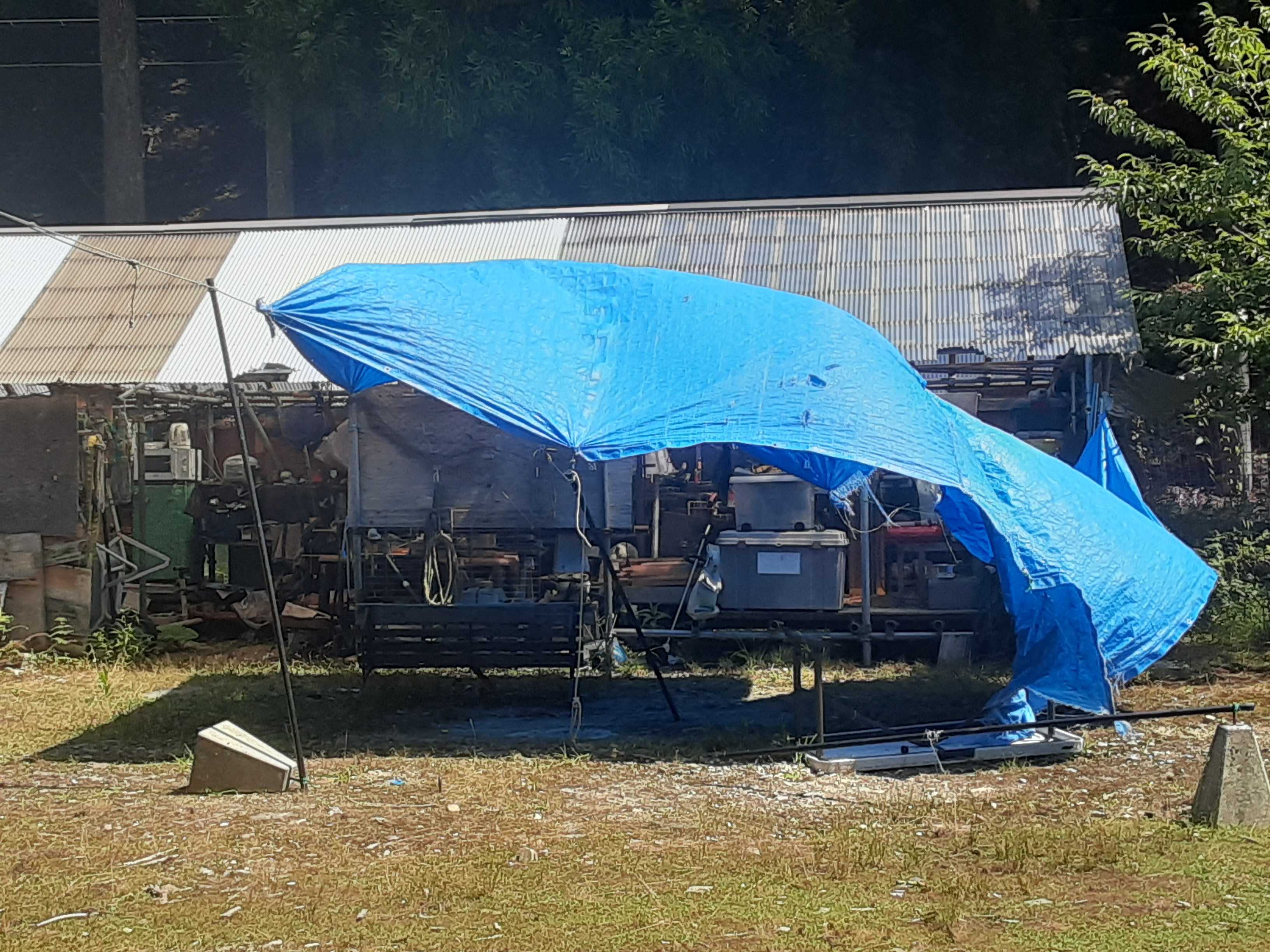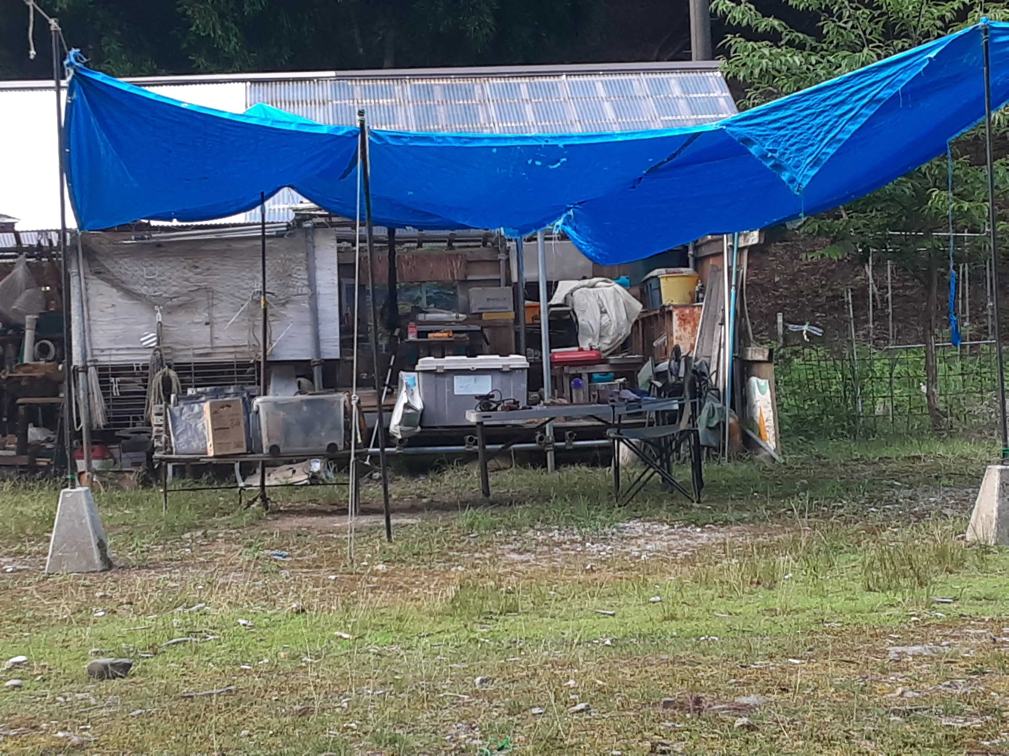夜が明けて・・・濃土花に到着した昨夜は暗くてよく見えなかった部分を朝から点検。風が強かったのか?タープ本体は無事だったけど、ポールを留め置いた束石が倒れ、テーブルもひっくり返っていたが、なんくるないさぁ。昨夜、鹿とぶつかった部分には損傷無し。鹿も無事だったことを祈る。池の様子を見ると、灯篭石が落とされている。風の仕業ではないのでおそらくイノシシだろうか。沢水はチョロリ・・・早速水源へ向かうことに。濃土花に自生した栗の木。今年も沢山の実がなっている。おいしくなぁれ~小さいけれど、山栗だから美味しいはず。去年より沢山の実が期待できる。沢に入って驚いた。水量が殆ど無いくらい水が少ない。水源に近いジョイントから外して様子を見る。最初はチョロリだったがようやく水が出た。でも、濁っている上に小石がかなり混じっている。その下のジョイントも同じ状態。でも、推量があるのでなんくるないさぁ~。パイプが詰まって水が出てこない部分もあったが、夕方六時に何とか沢水を確保。遅い昼食兼夜食をたべて、一日が終わってしまった。臨時保育園にやってくるこどもたちへの竹製玩具作り。明日は頑張って作らなければ・・・。