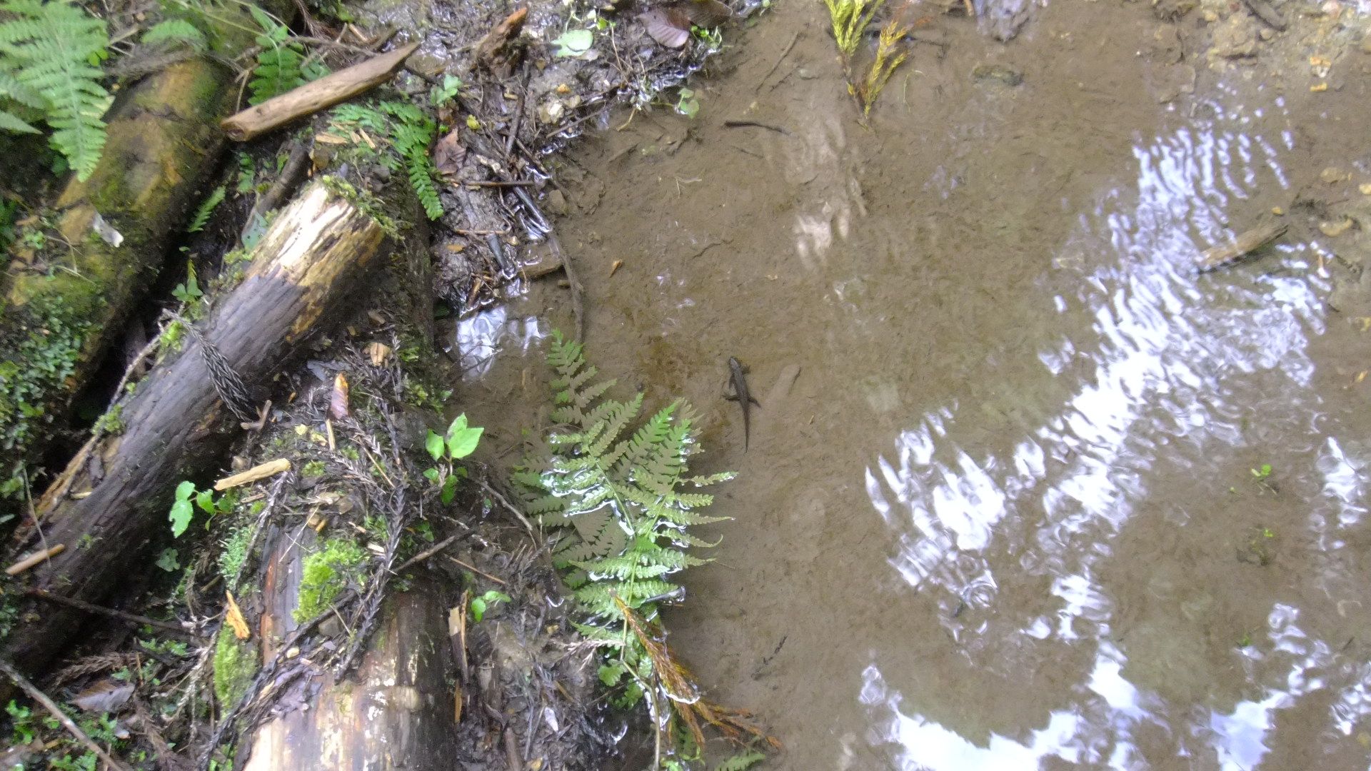 水源地に向かう林道の水溜り。
