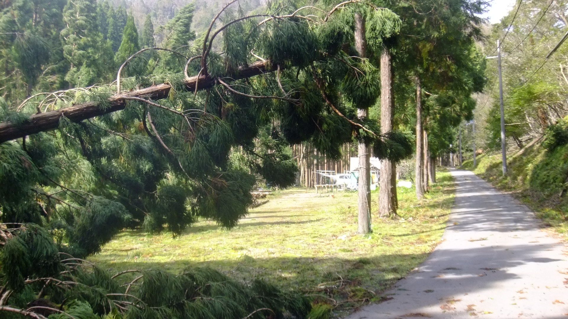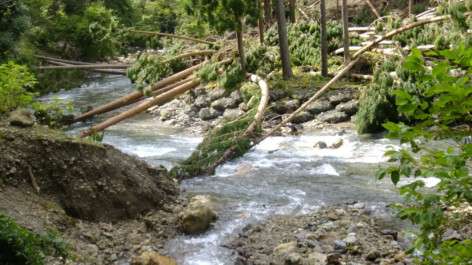 一月間続いたこと、河川に倒れこんだ杉は