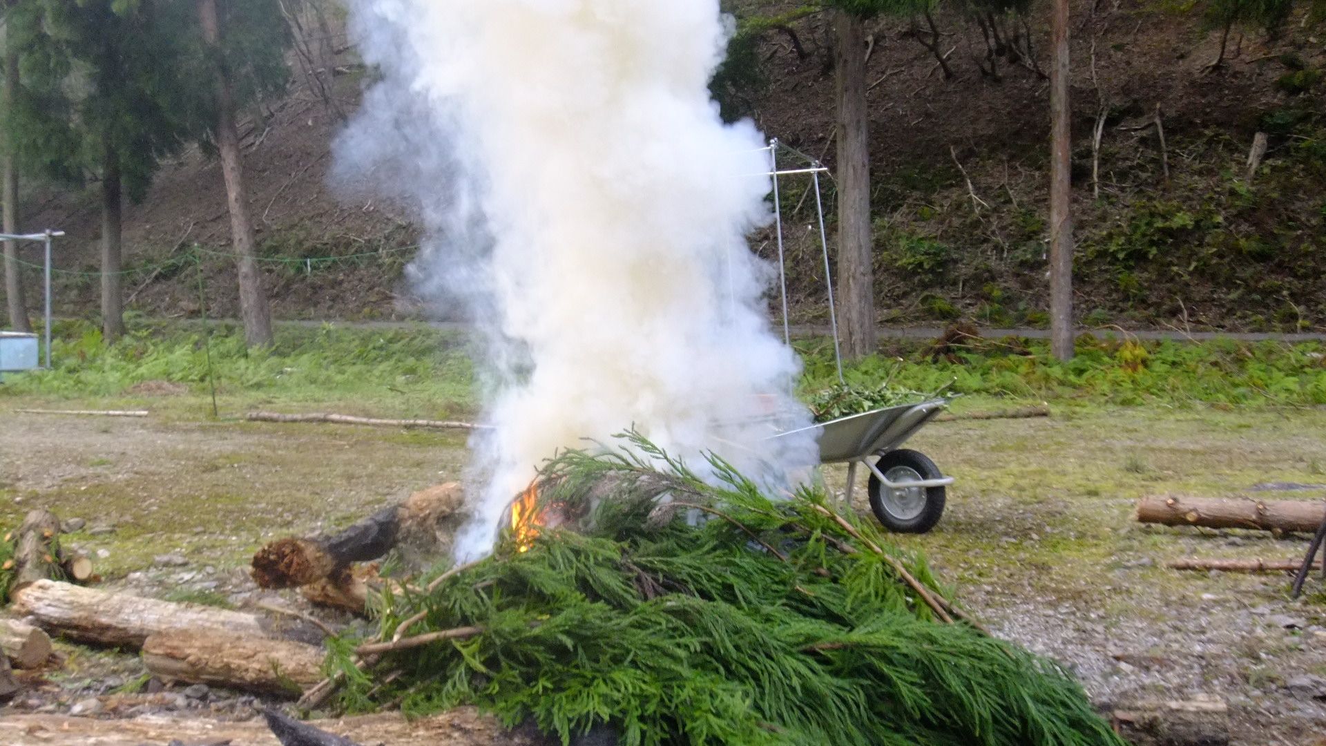 杉を燃やし