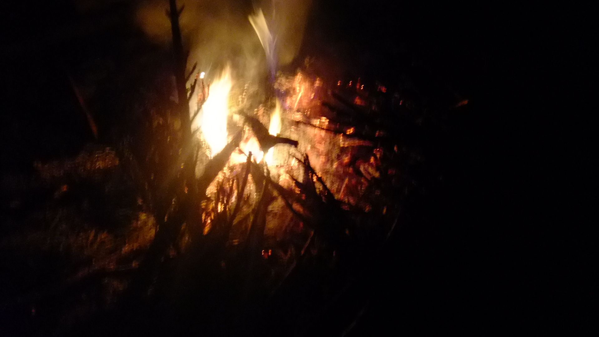 妻を送り出してから焚き火。