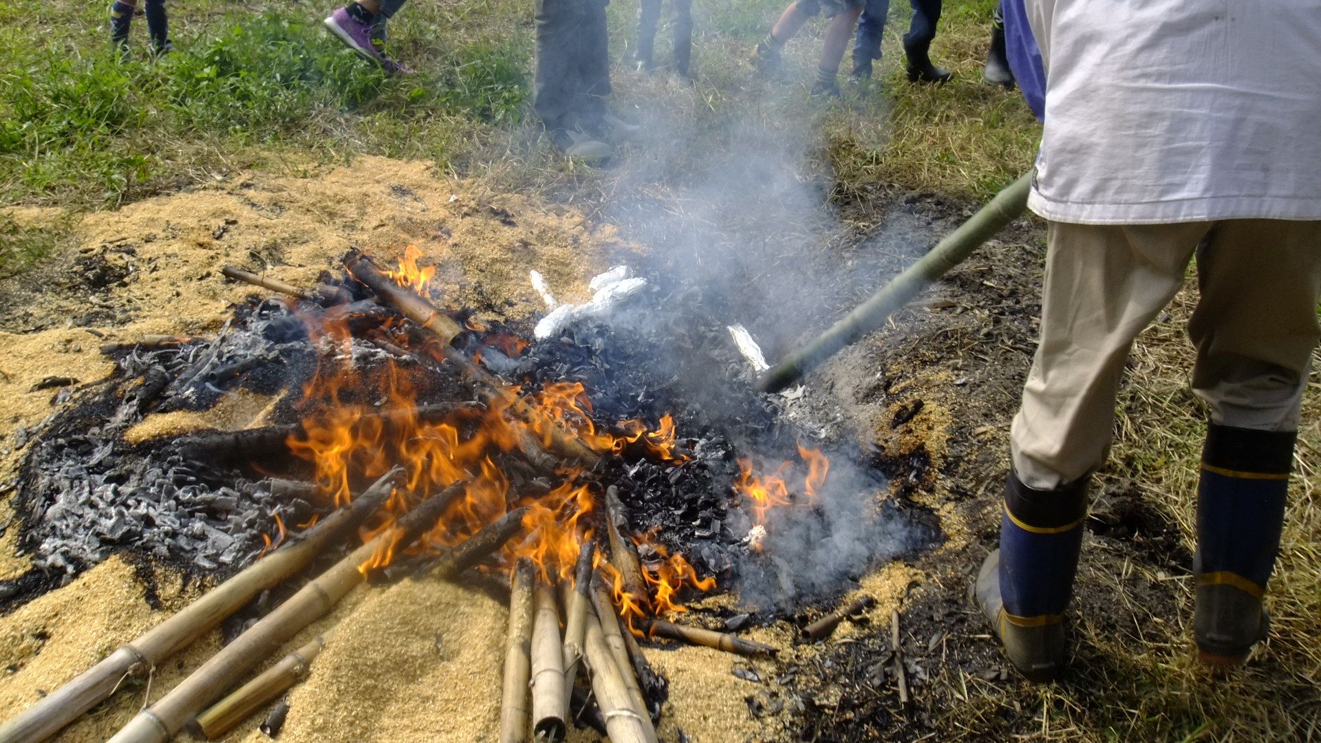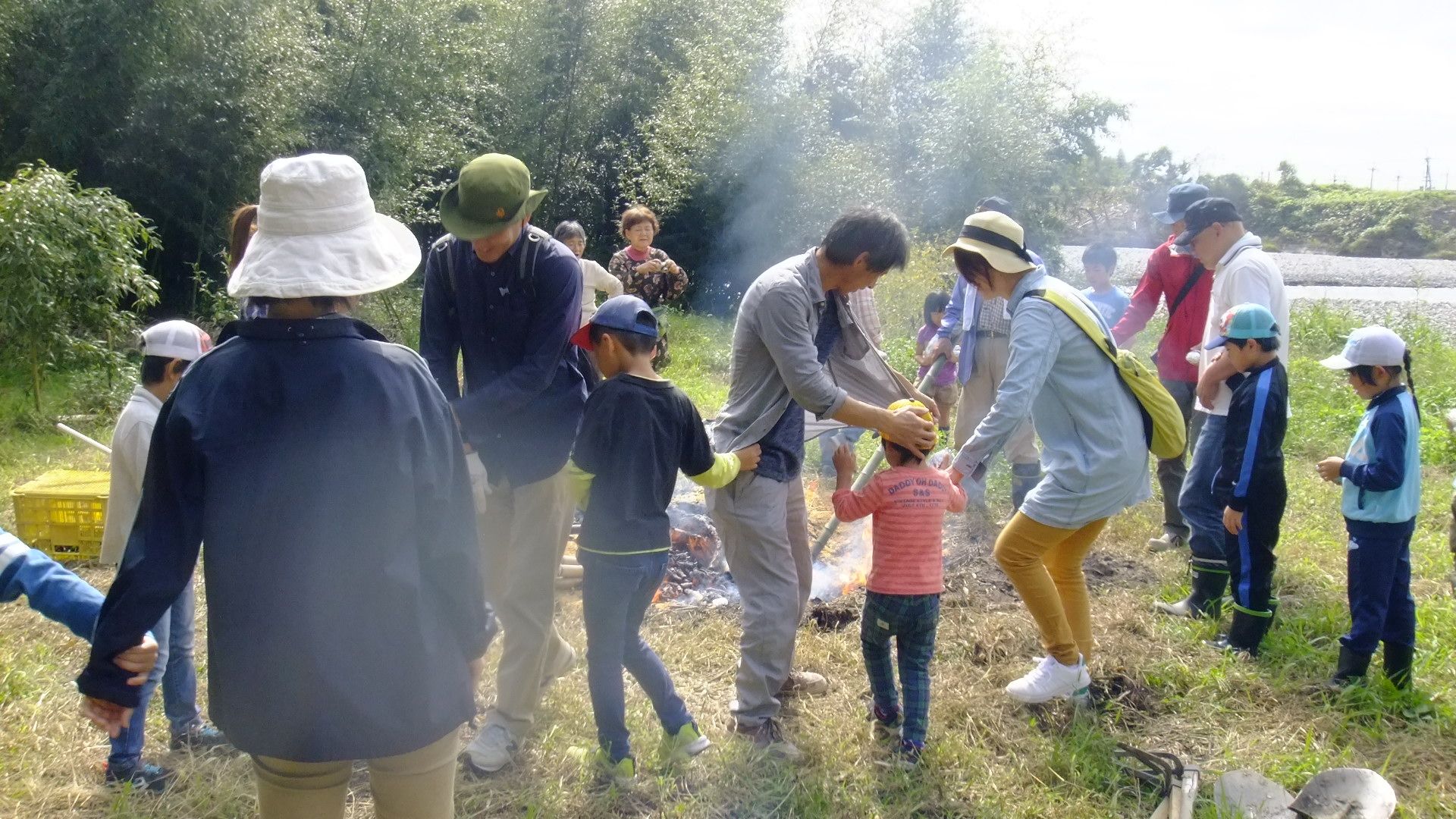 沢山の親子連れが焚き火に集まります。