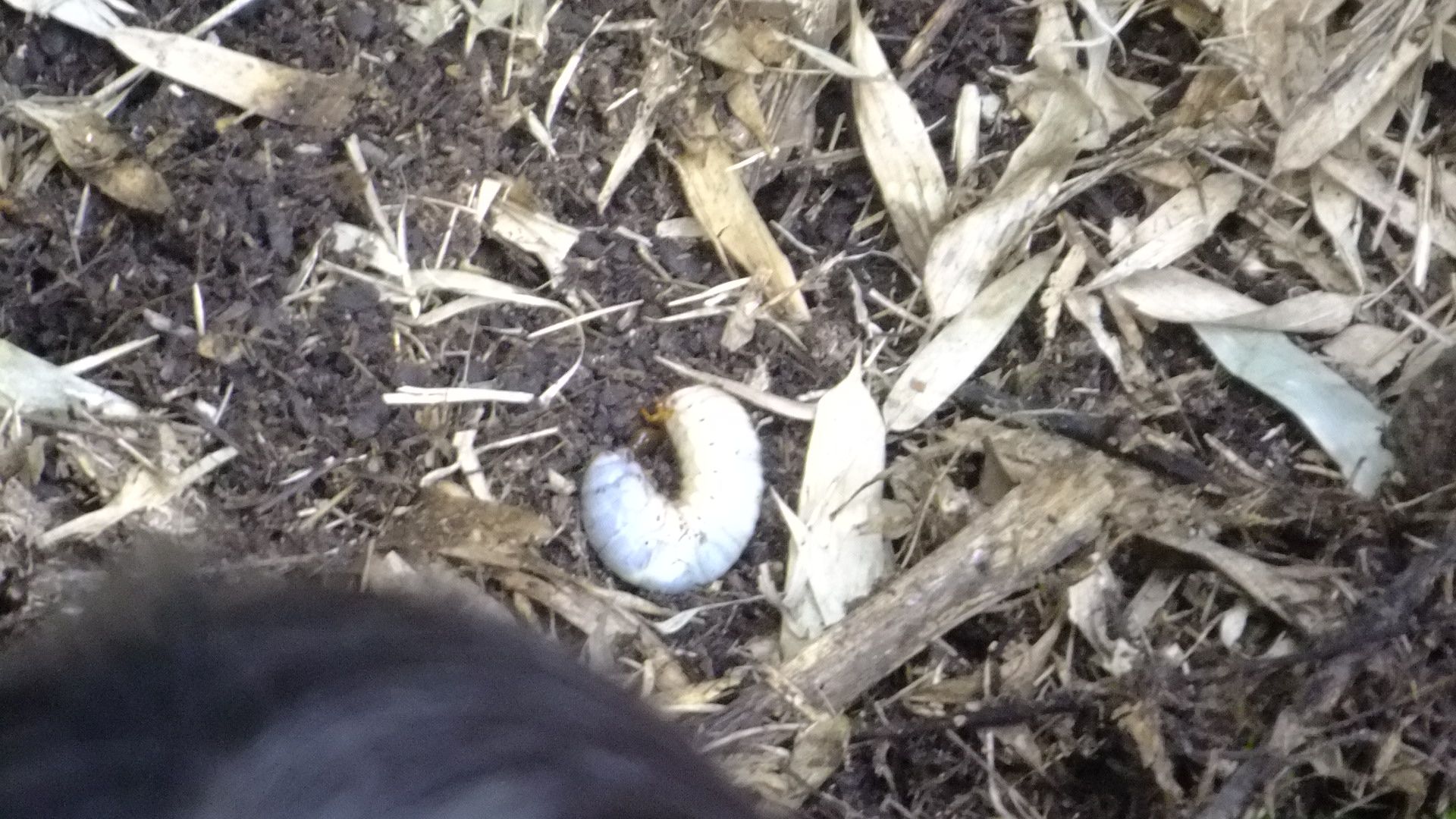 するとカブトムシの幼虫が出てきました。