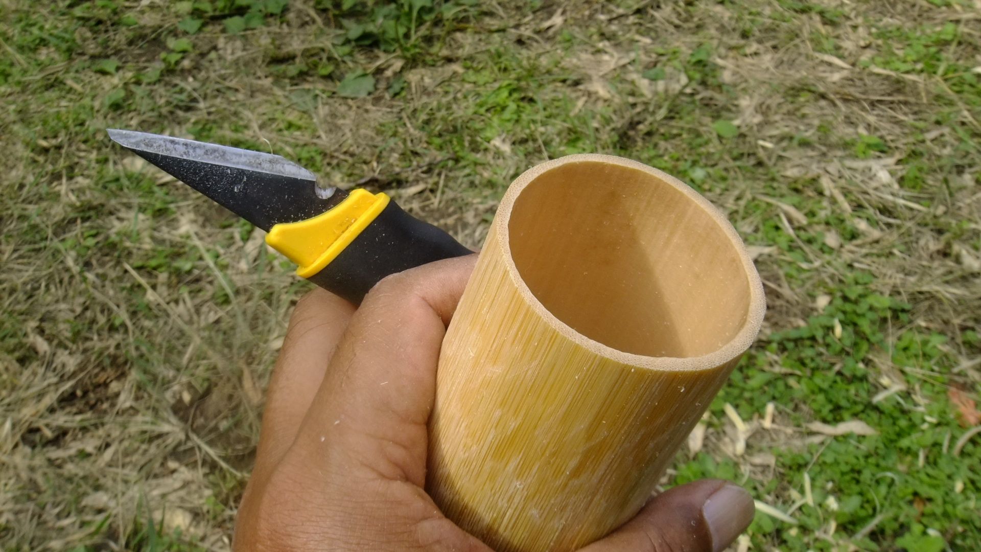 早速竹を加工して自分の食器作り。