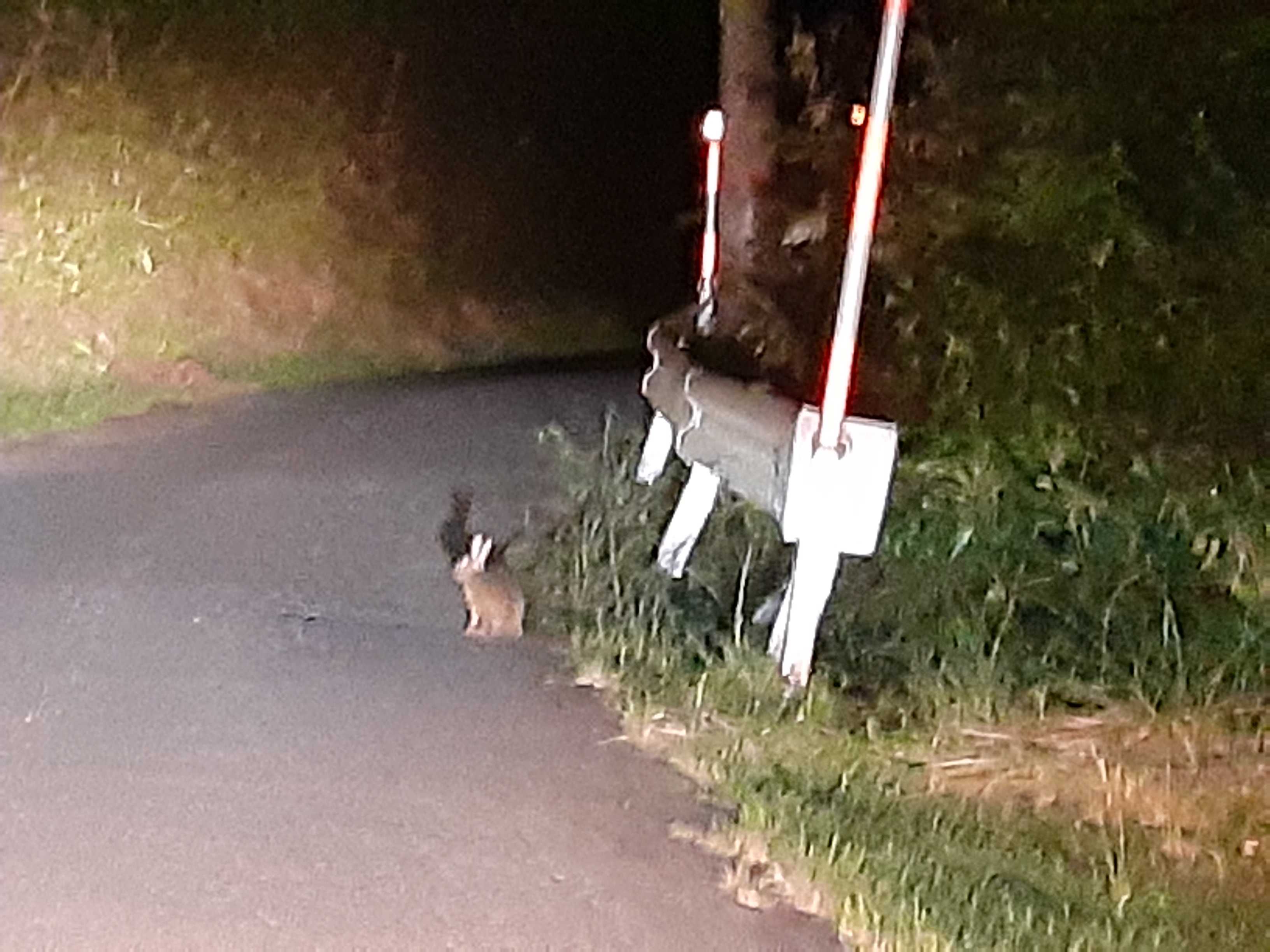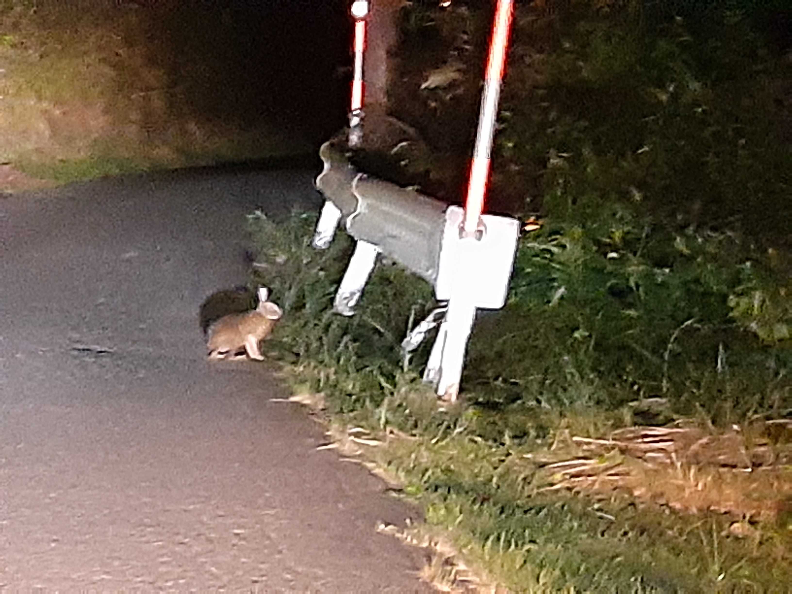 昨日はシカでしたが、よりレアなウサギのお出迎えに車内はハイテンション!