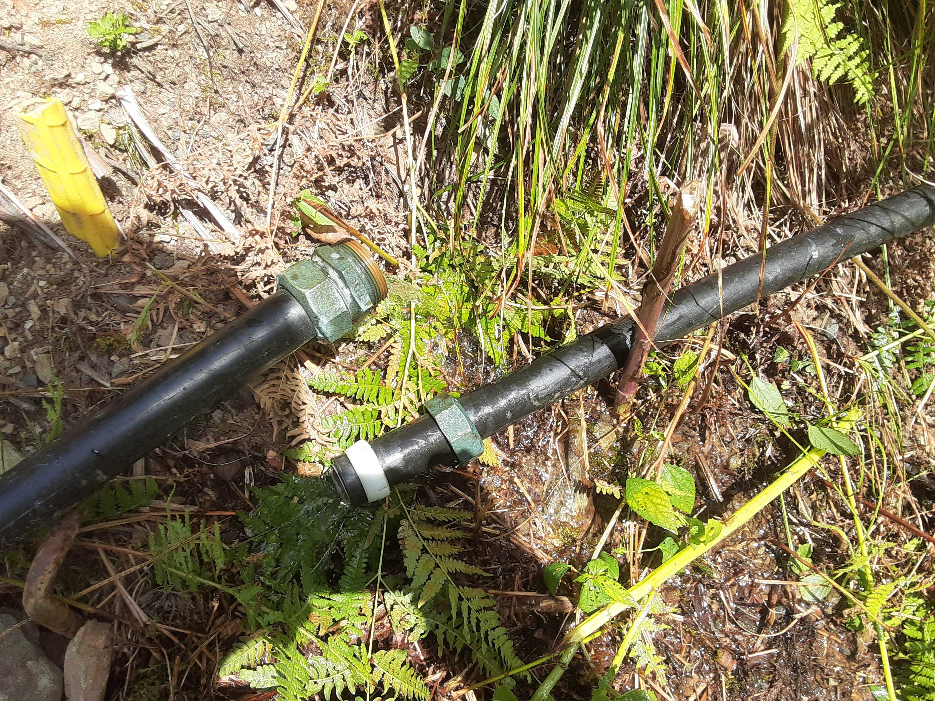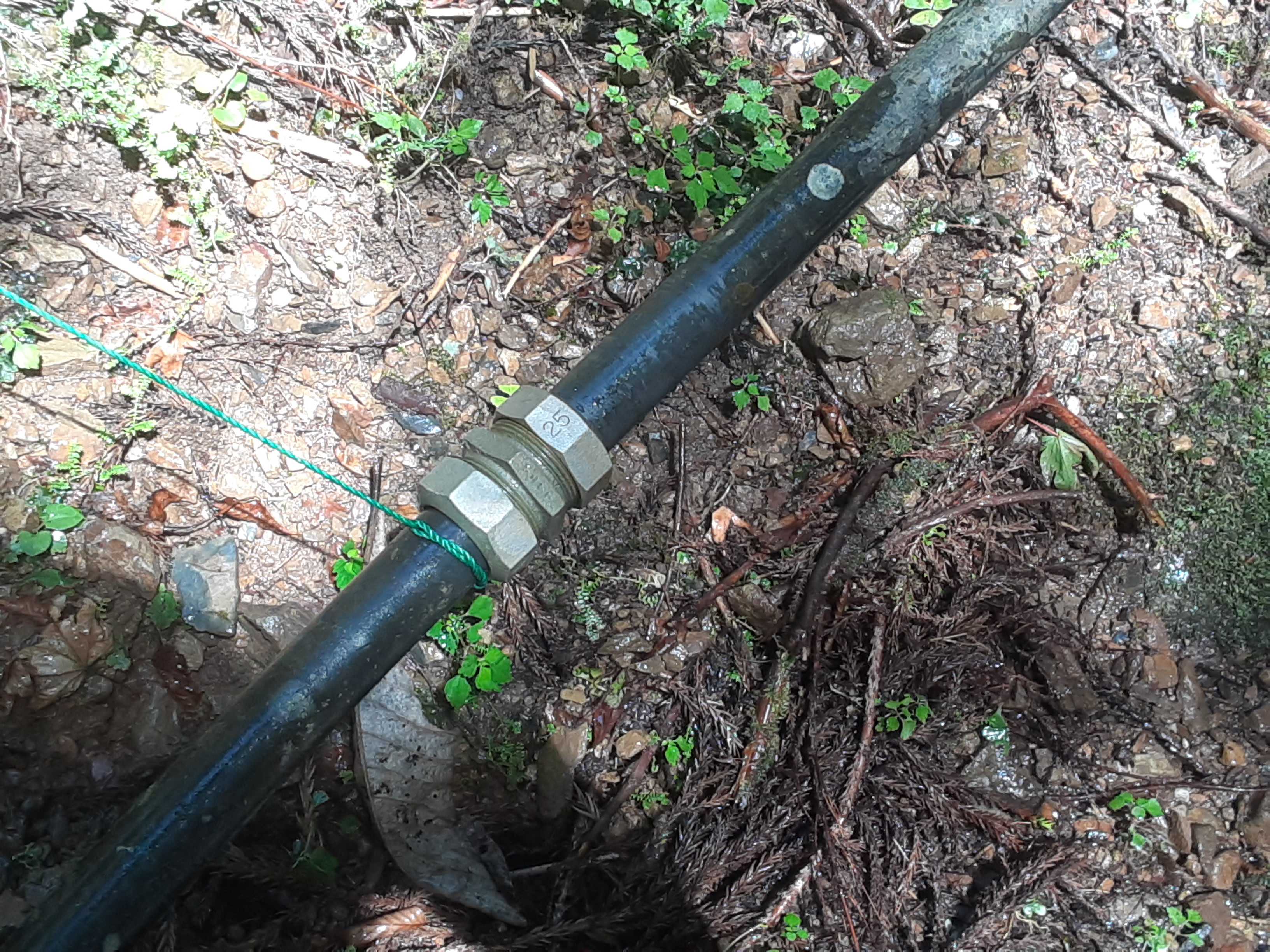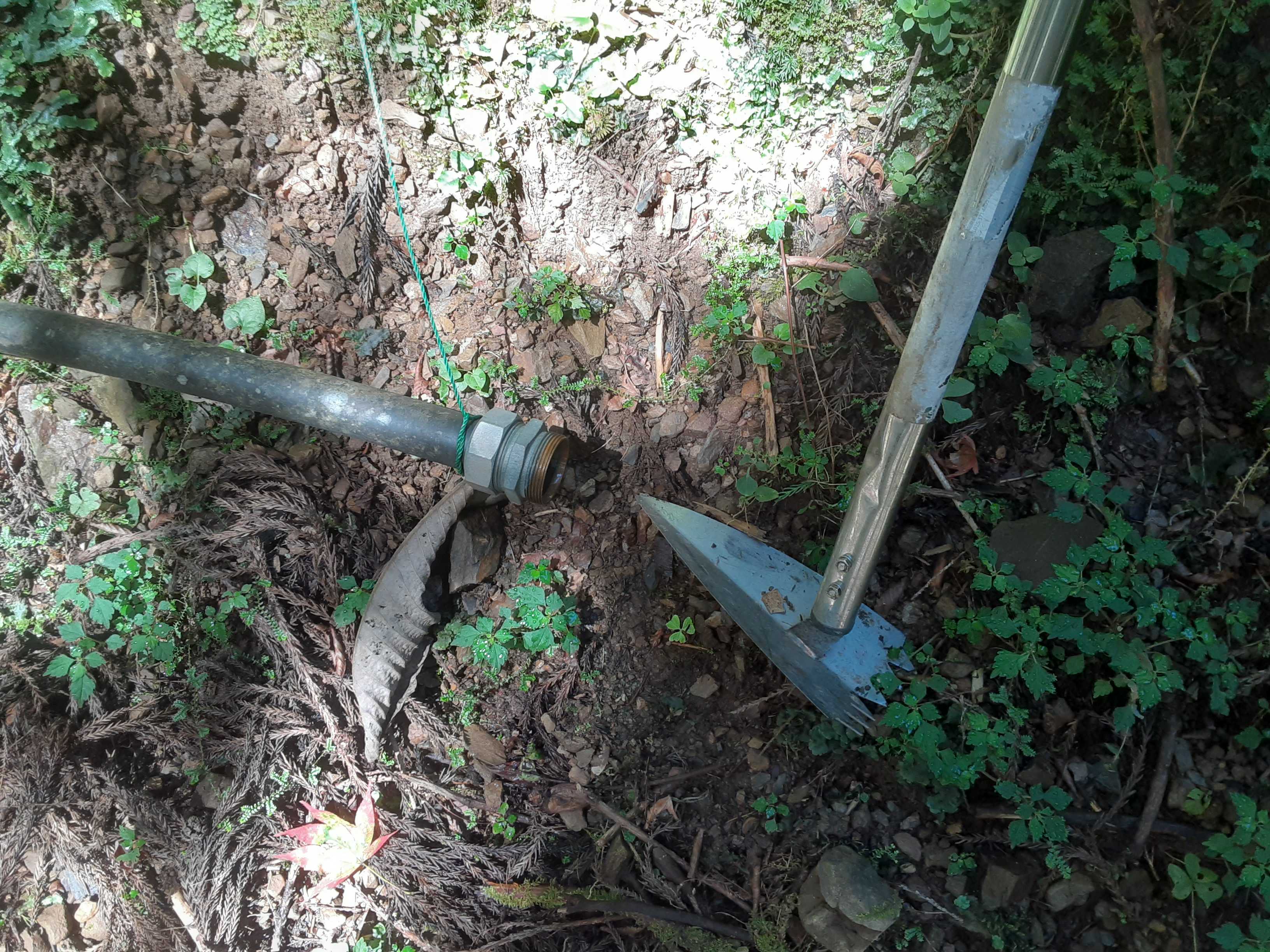 今度はパイプを繋ぎながら沢を降りてゆく。