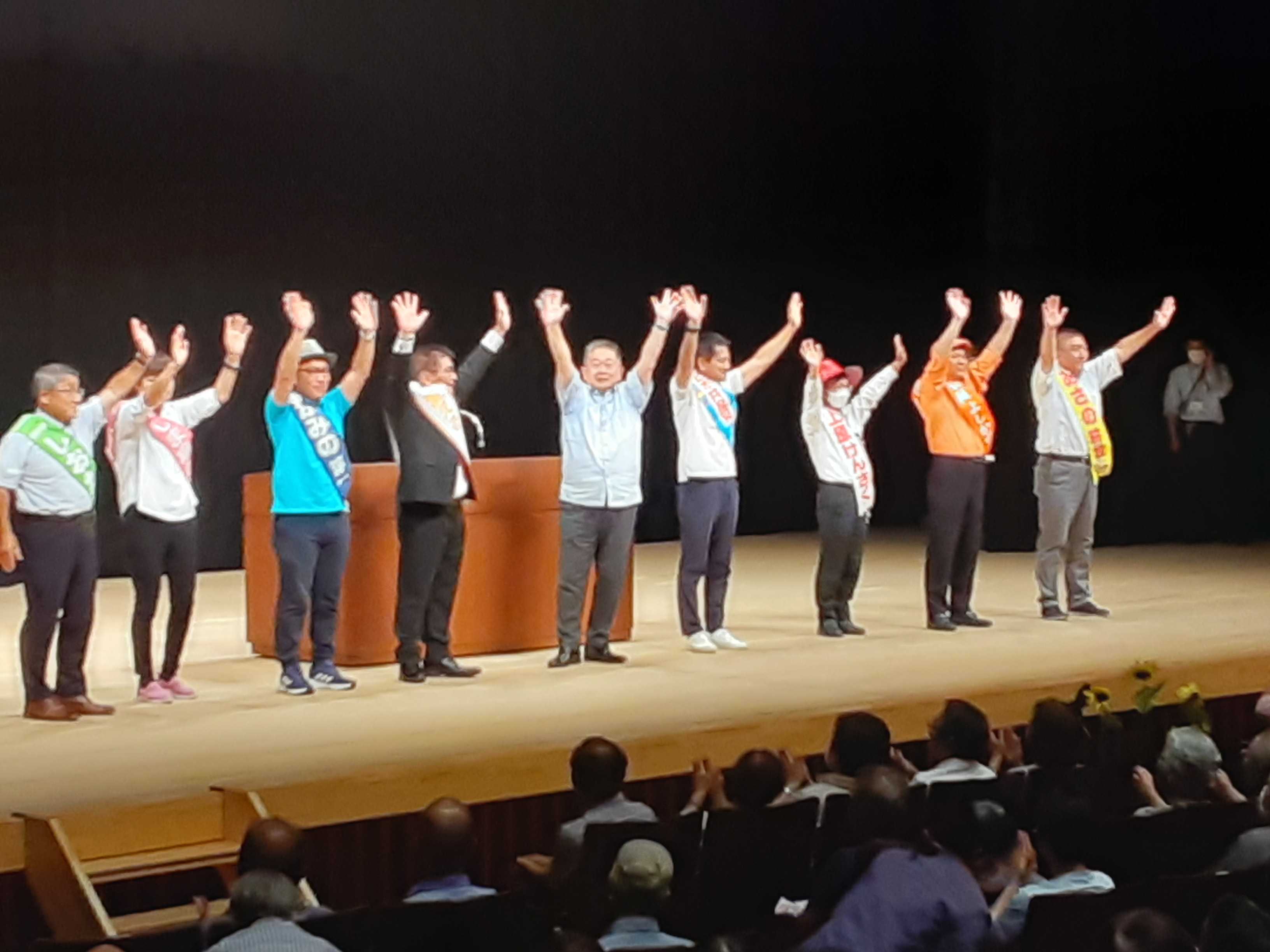 今日はお隣、東大阪市の市長・市議会選の候補者や日本共産党の小池書記局長の演説会。