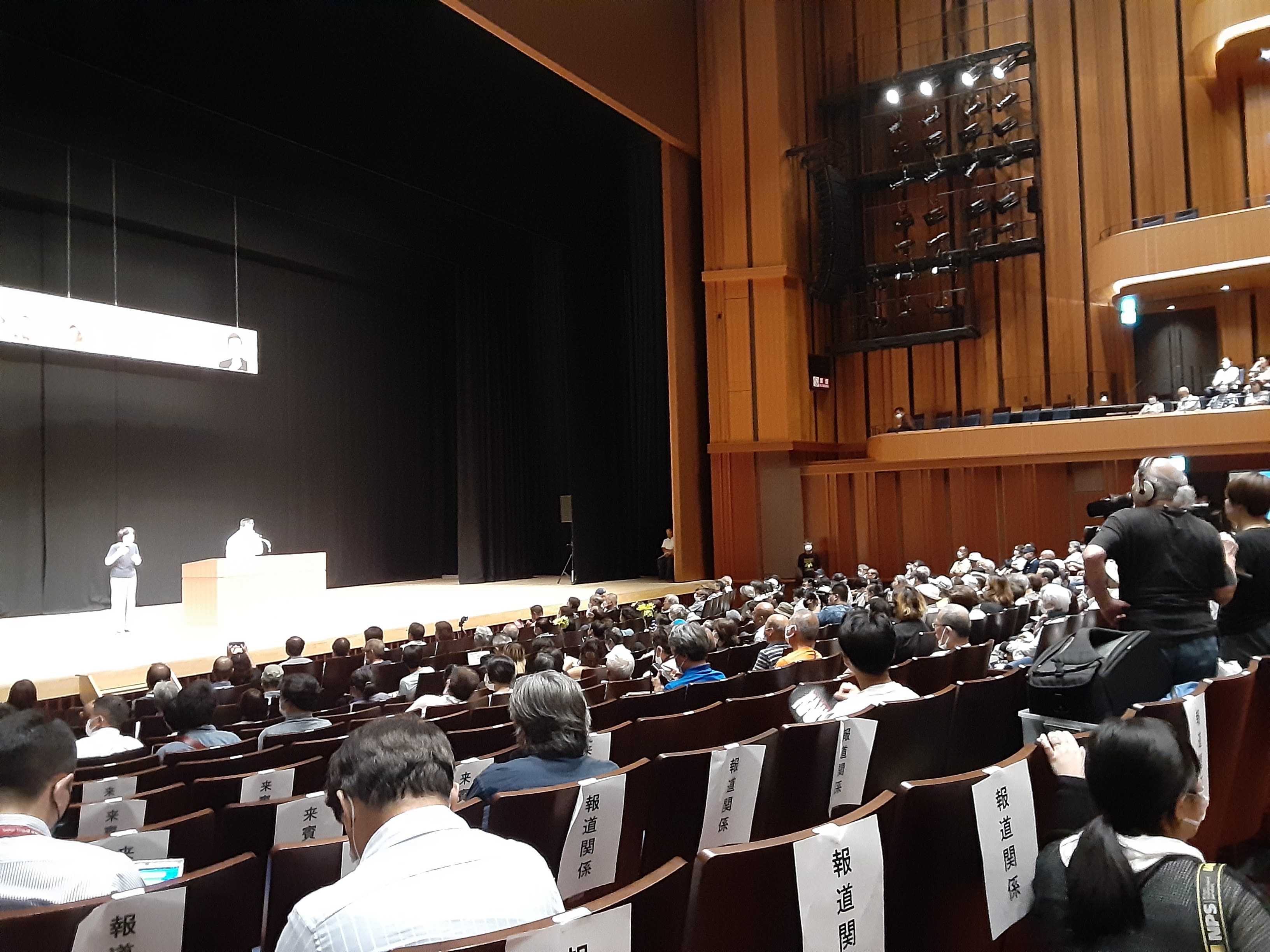 記者などの報道関係者たちは頻繁に出たり入ったりする中で小池書記局長のお話が始まった。