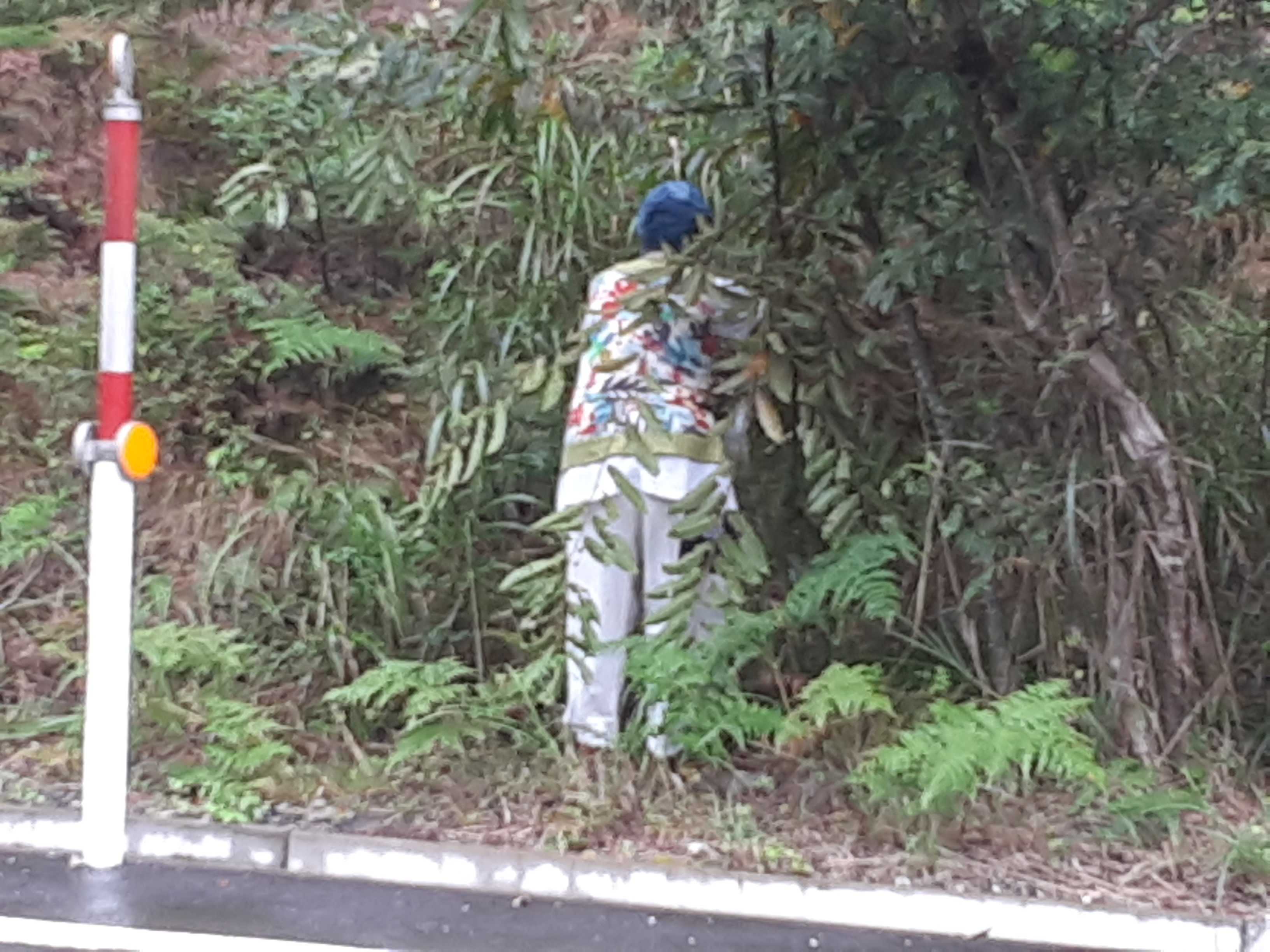 朽木の森付近で妻が「止めて」といってやぶの中へ。