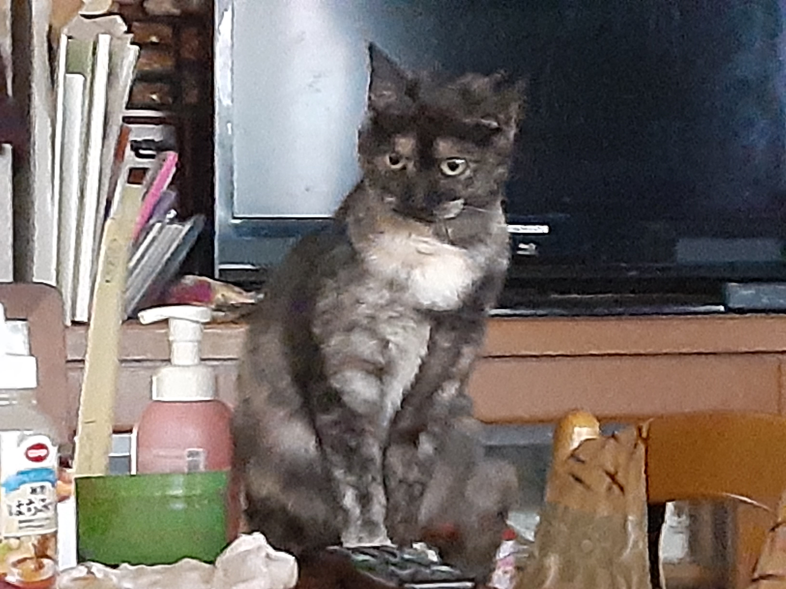 テーブルの上に乗ると叱られるので乗らないようにバランスをとっていたけれど、