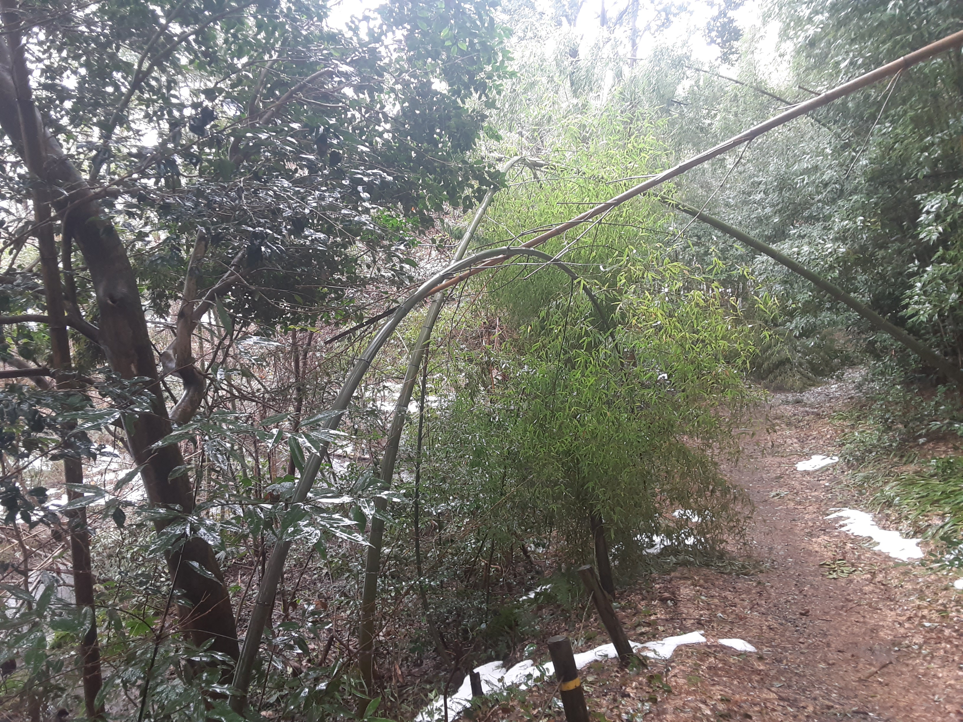群生地を取り囲む竹林の多くが倒れたり割れていたりしました。