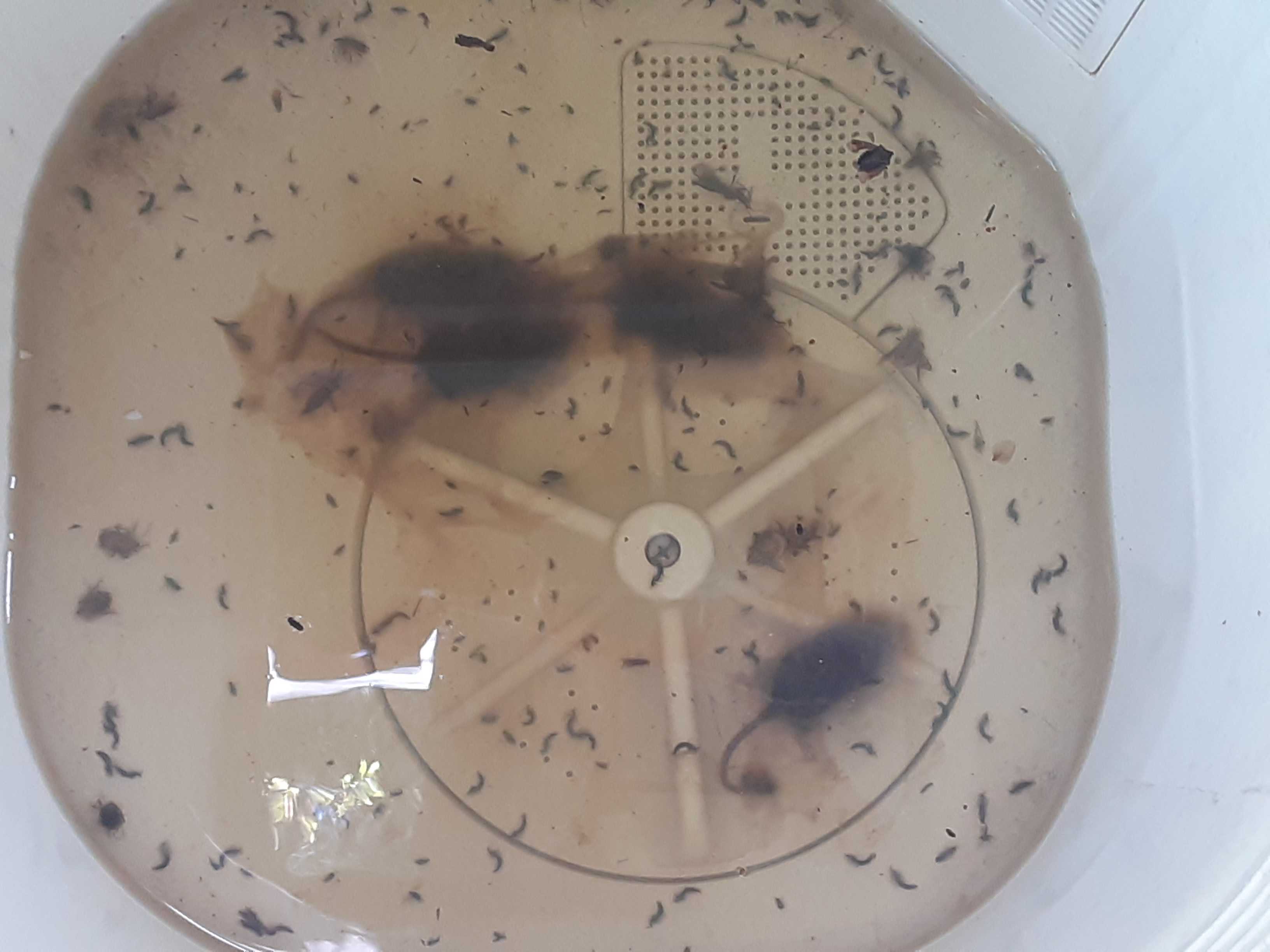 そこには水が溜まり、モリアカネズミの死骸が4つ。