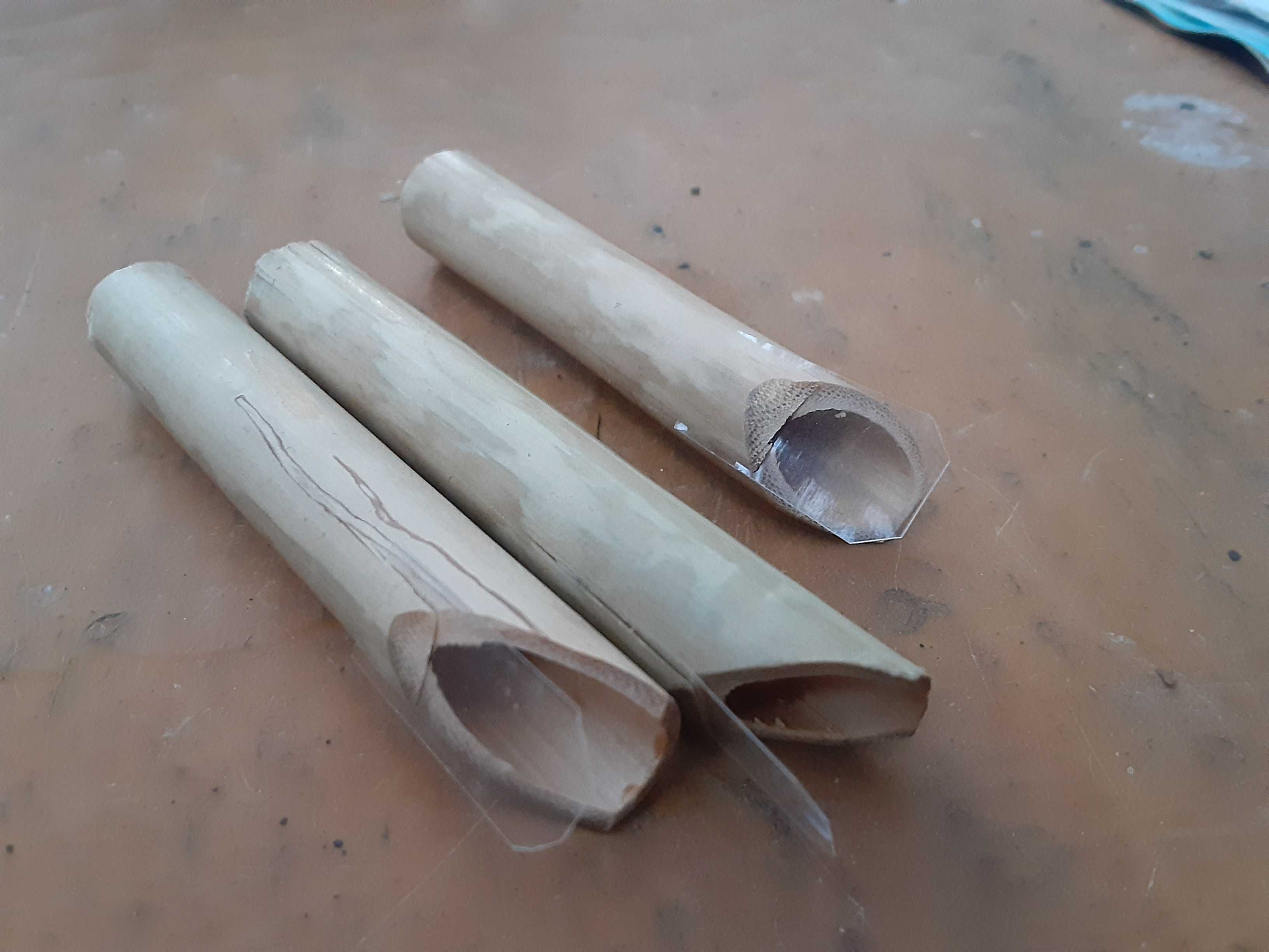 本来、リードの部分は笹の葉を使うのですが、手に入らなかったので、柏餅が入っていたプラ容器の蓋を切り出してみました。