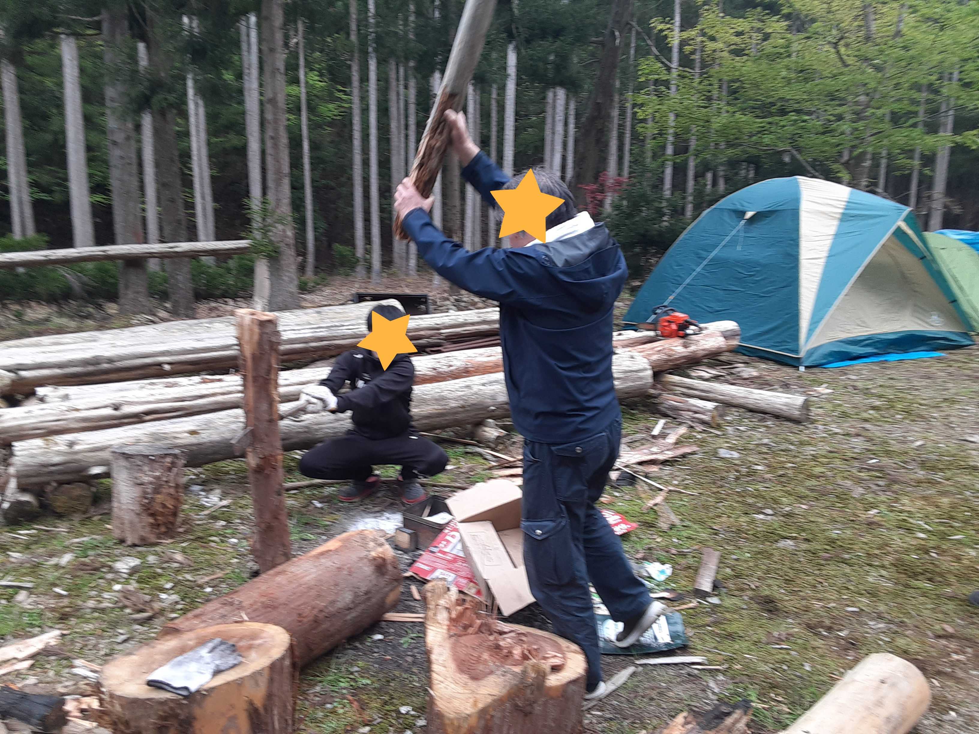 濃土花に戻ってからはボンファイヤーのための薪割り。