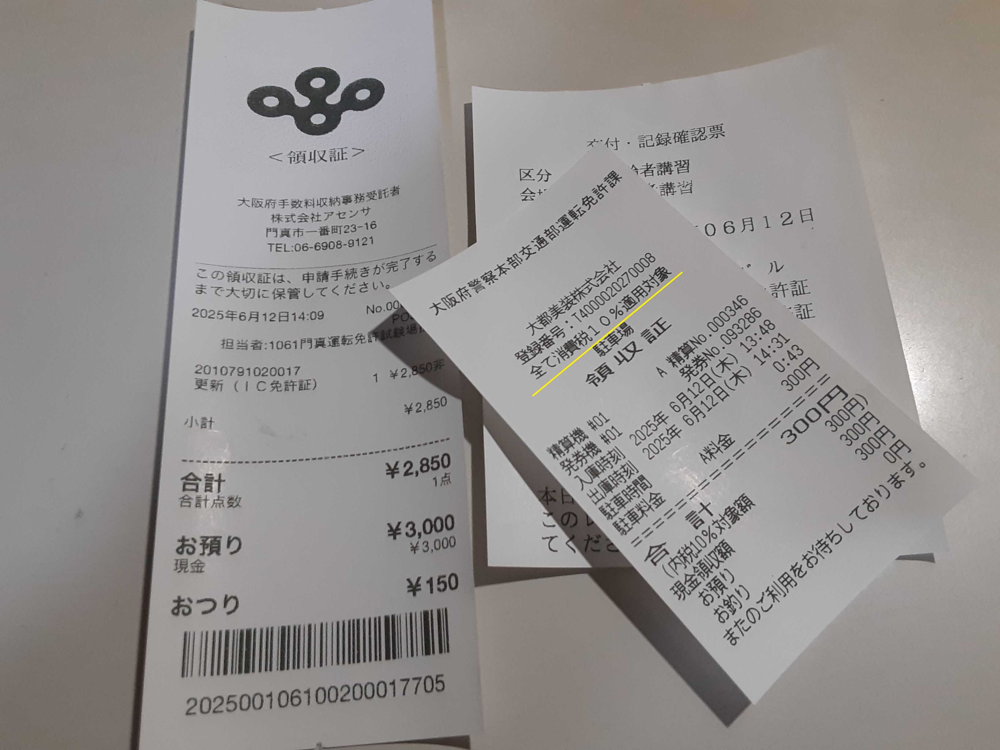 窓口で料金を支払い、写真撮影などをして即日免許証が交付されました。