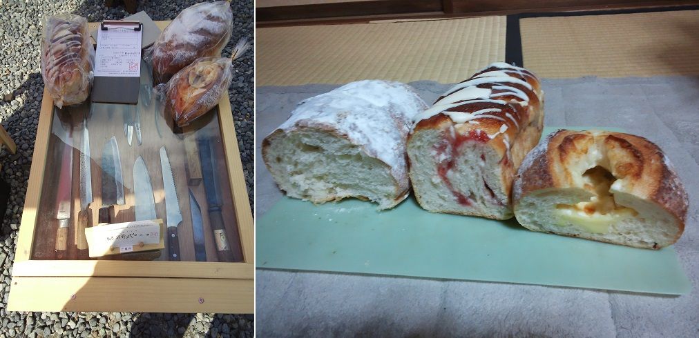お土産にはお向かいの店からパンを買いました、断面の写真から「ソフトフランス」「いちごスペシャル食パン」「チーズ〇〇」。