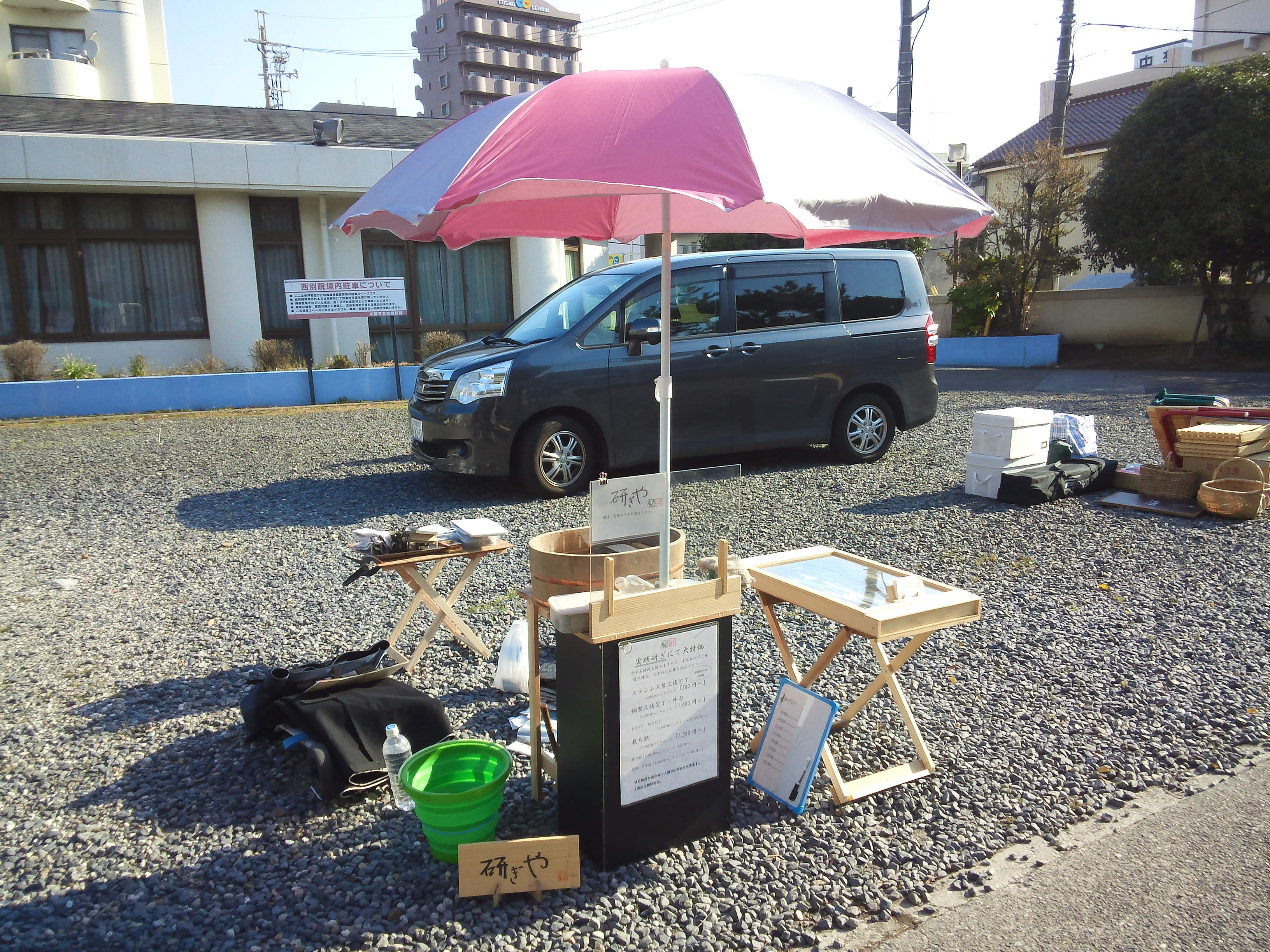 この後しばらく間があって、それからは、ずっと研いでました。後から郵送ご希望のお客さんもいたのですが、時間切れでお断りとなったお客さんも出ました。