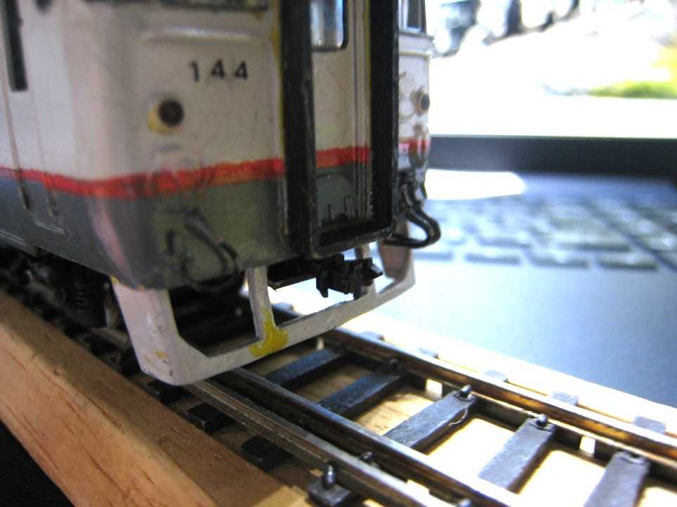 IMONの蜜自連へ1位、2位側共に連結器は、良いのです。がただ 塗装に割れが これ本物と一緒で 下地のプライマーとの 塗料の相性の悪いのと経年劣化も出てる これは、全検塗装ですね走行は、調子が良いですので暫くは、この状態で走行します。