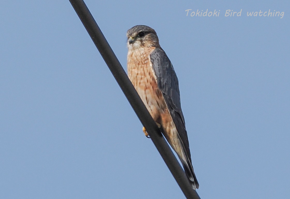 3月1日(土)月が変わったら急に春が来たように暖かくなって、今日は上着無しでウォーキングでした。チョウゲンボウが電線に止まったと思って撮影したら、コチョウゲンボウのオスでした。コチョウゲンボウ♂名前の由来が小型のチョウゲンボウで普通のチョウゲンボウよりちょっと小さくて数はそれほど多くないと思います。チョウゲンボウ♂(本年2月21日撮影)チョウゲンボウは電柱や電柱の足場に良く止まりますが、コチョウゲンボウは電線にしか止まらないそうです。久しぶりに撮れてチョットと嬉しかった^^