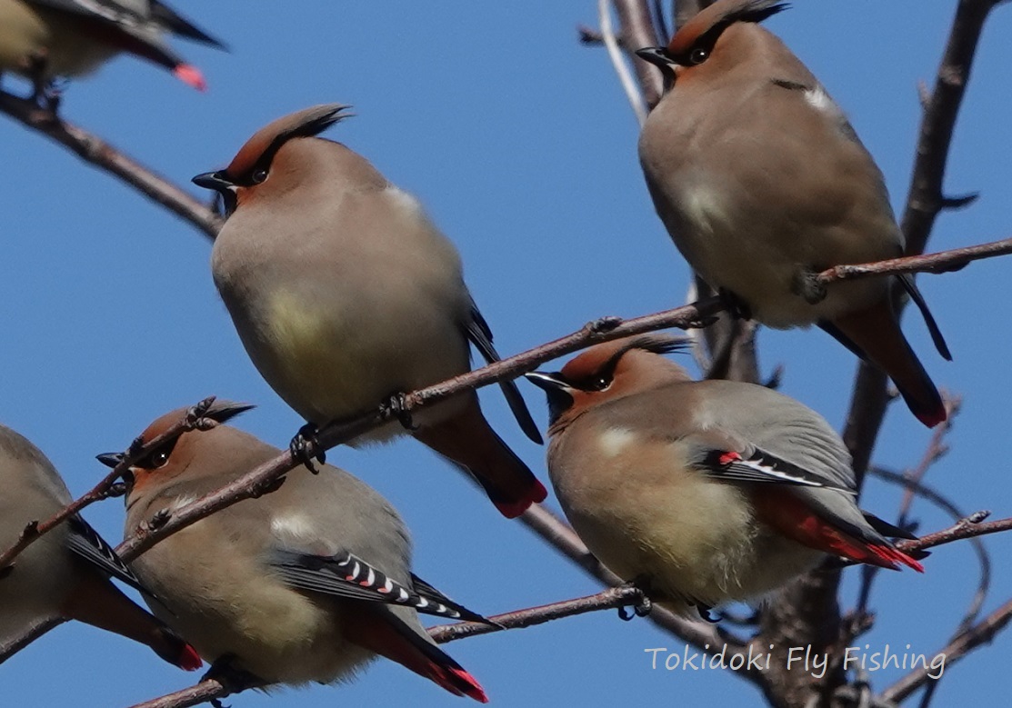 3月6日(木)今日は鳥見に行ったのですが、何も撮れませんでした。季節の変わり目で鳥も移動の時期なんでしょうかね?狙いのヒレンジャク(2024年3月2日撮影)今日はこれが狙いでしたが今年はヒレンジャクの情報が全くなく来なかったのかも?で、早めに帰って来て、またフライのタイイングでした。今回はやや大きめの#15#15Fニンフ最初に出て来る大型水生昆虫はオオクママダラカゲロウだけど、目立つダンはほとんど食われないのでこれで間に合わせようかと?#15CDCダンアカマダラがハッチするとライズも分かりやすく、ストマックにも良く入っているので?で、今回はお粗末フライが5本出来上がりでした。このフライの出番は今月の下旬以降と思いますが、出番があることを願ってます。