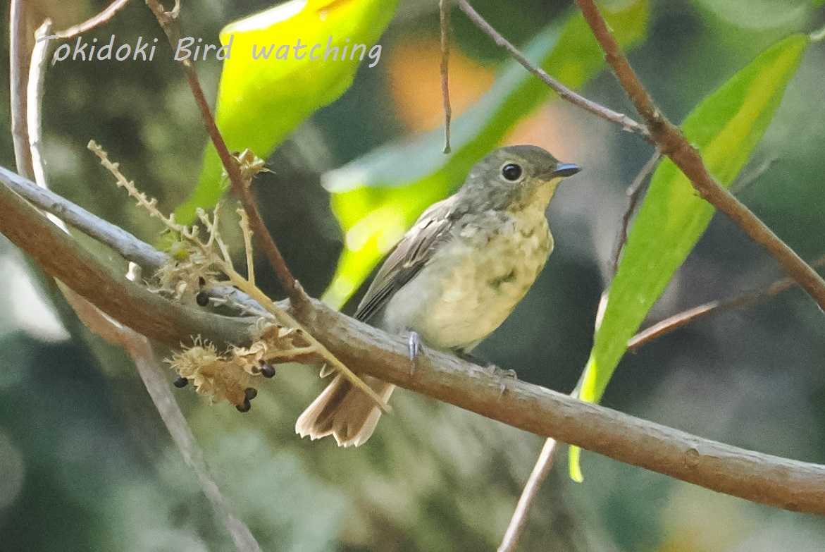 9月9日(火)日課のウォーキングを兼ねてカメラ持参で近所の公園まで行ってきました。まだ葉が茂っているので鳥は確認し難いうえに、鳥の数も少ないので余り写真は撮れません。この公園では年中無休のコゲラ前回、居たコサメ、エゾビタキも全く姿を現さず諦めかけたら、園内にあるアカメガシワの実を食べて居る小鳥を発見しました。キビタキのメス撮った時はコサメビタキと思っていたけど、帰ってからパソコンで写真を確認したら、アイリング、目と嘴の間、嘴の色がコサメではなかった。背部が青くなり始めたオオルリのオス(若鳥)帰る前にもう一度アカメガシワの木を確認したら、小道の反対側にちょっと大きめの鳥が居てもしかしてと思ったらオオルリの若鳥でした。夏鳥が移動し始めてこの公園にもやって来るようになったようで、これから賑やかになってくれれば暫く楽しめそうです。