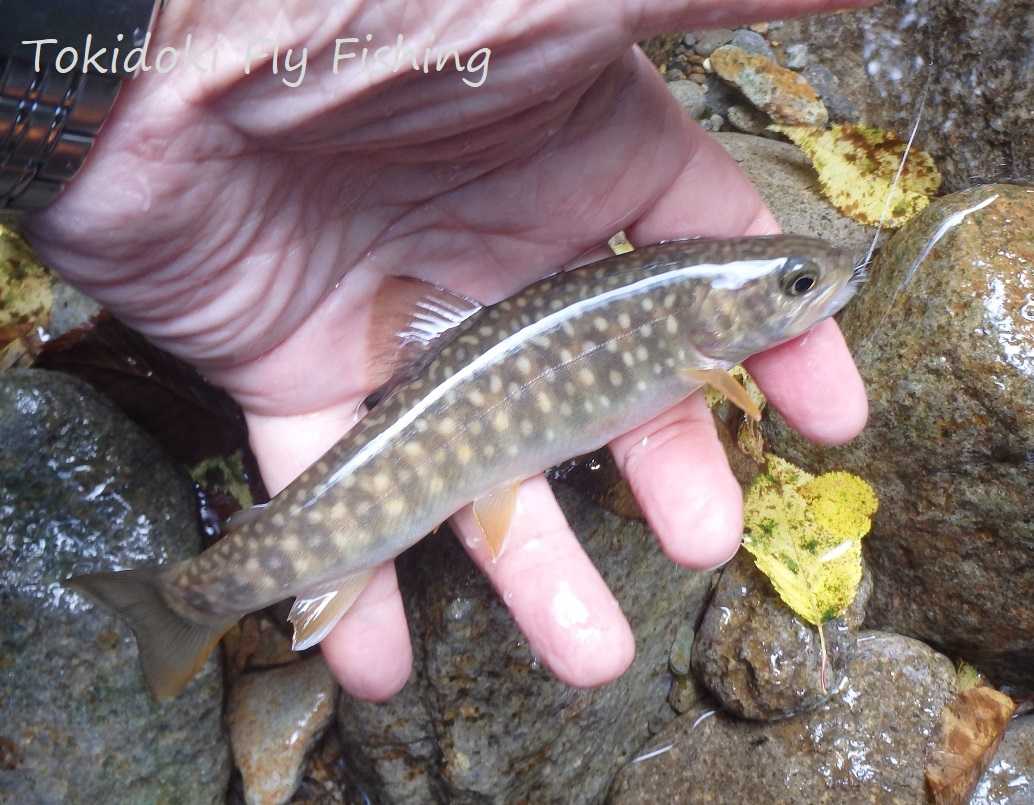 9月17日(水)友人とほぼ2週間ぶりにシーズン終盤の渓へ行って来ました。天気が良くて気持ちは良かったのですが、相変わらず厳しい渓でした。1尾目最初の堰堤下プールで左岸寄り流れの更に奥の流れが無いポイントから出てくれました。割と早くヒットしたので行けるかもと思ったら激渋で、昼までに渋いながらヒットはしましたが撮影前に逃亡続きです。4つ目の堰堤下プールもヒットせず早めに上がって下流部へ戻り、二人分かれて1時間ほど延長戦です。ヤマメ最初に出たのは20cmもないヤマメでした。堰堤下プールの下流にある何でもない小さなポイントから出たのは・・・。泣尺イワナ尺あるかも思って何度計っても泣きでした!!結局、堰堤下プールは反応もなく本日終了となりました。今日も厳しい一日でなんか今年は釣れないね?