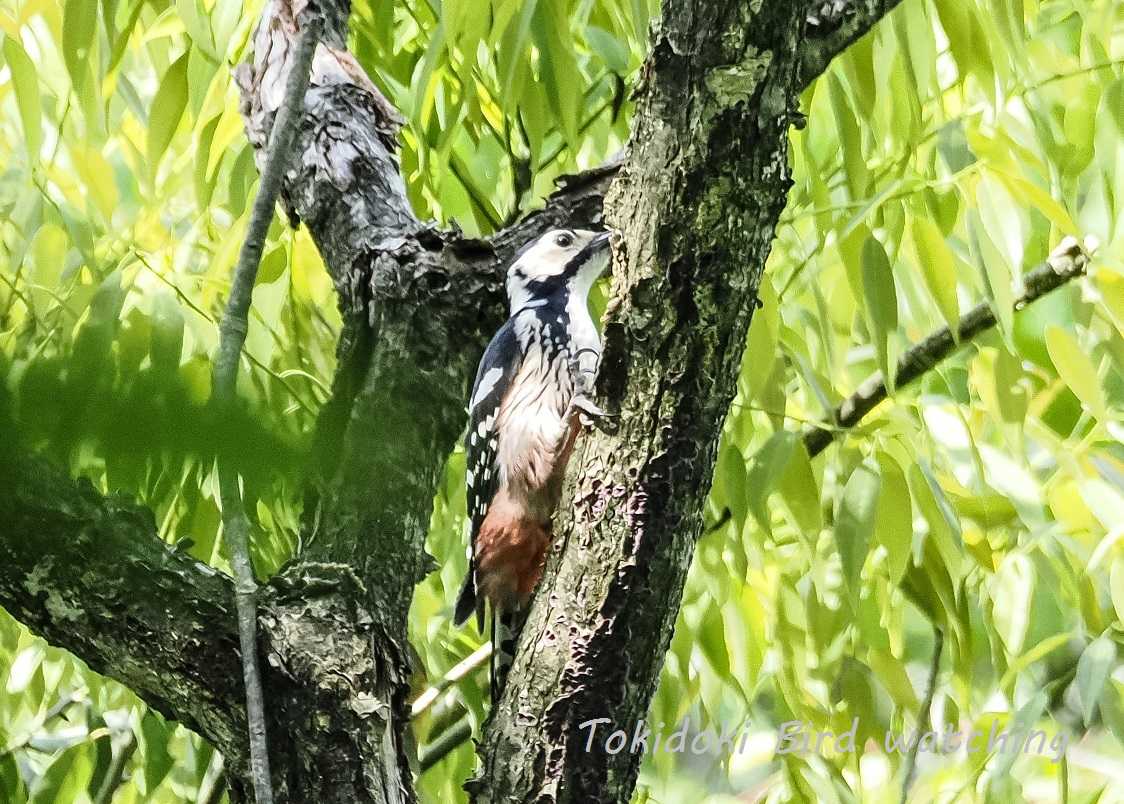 6月2日(月)この一週間で同じ場所に3度鳥見に行って、3度目でやっと狙いの赤い鳥を撮ることが出来ました。現地に着いて待つこと40分で鳴き声が聞こえたので探したら、一旦は飛ばれたけど見える位置の枯れ木に止まってくれた。アカショウビン鳴いている下が気になるドアップ飛ばれたオオアカゲラ二ホンリス1回目(←クリック)は何度も見ただけで撮れず、2回目は雨に降られ鳴き声すらなく、3回目の今日は鳴き声を何度も聞いけど撮影できたのは1回だけだった。今日は3回で一番早く家を出ましたが、その甲斐あってか何とか撮影できて良かったです。