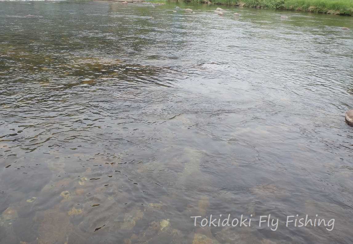 5月29日(木)10日ほど前の鳥見でコケて痛めた背中の痛みがやっと引いてきたので、アユ釣りの解禁前に最終のライズ狙いに郡上へ行ってきました。何時もより早く家を出たけど、頼みのポイントもライズなし。たまに跳ねるのは小鮎大和地内から高鷲地内までライズを探したけど「ラ」の字も無い。来た時に見たポイントをまた見たらライズらしき気配が・・・で、ここでスタンバイすると上流の瀬で派手なライズがあった。パラシュートフライにヒットストマック(パラシュートに良く出たものだ?)15分後に2尾目は8寸ストマックは?さらに20分後の3尾目ストマック??最初の1尾以外はライズが有った訳でもないがシツコク流したら出てくれた。ただ、その後は反応が無くなり昼食で一休み。午後は一時ライズが集中しで2、3度とフライに出たけどヒットできずで時間だけが過ぎていった。次第に右(下流側)からの風も強くなって午後4時前に諦めて終了でした。明日から雨で月が変われば鮎も解禁になるので、ライズの釣りはひとまず終了ですね。