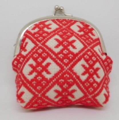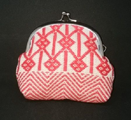 こぎん刺しのがま口出来ました。模様は花コとカチャラズこぎん刺しにはまっちゃいました。【犬扇印ケンセン】刺しゅう布(こぎん布)コングレス NO.5000【C3-8】U1.5 M1