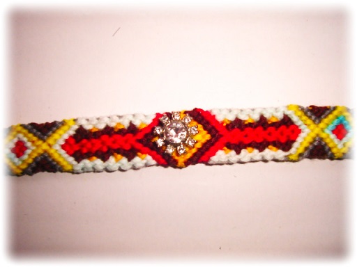 このミサンガ に100円ショップで買ったビジューボタンつけてみました。