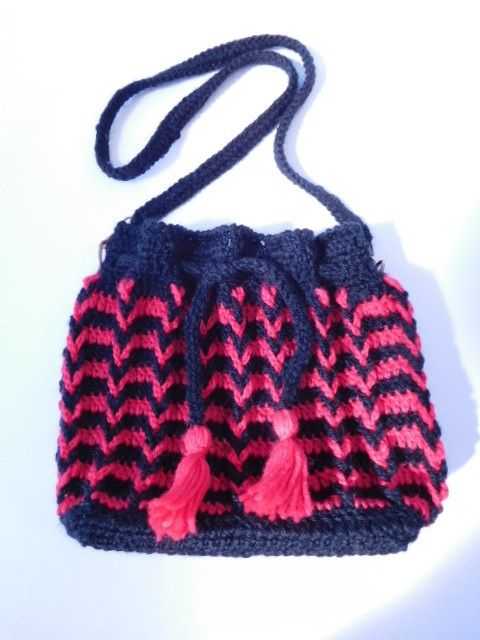かぎ針編みショルダーバッグ同じ模様で巾着バッグ