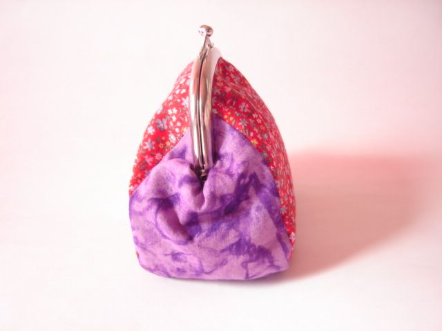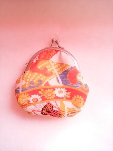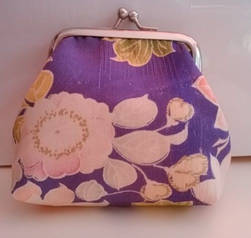 最近は100円ショップに行くたびに がま口金を買ってます。初めてのがま口何とかできました。7.5㎝ 丸型着物の端切れで作りました。反対側