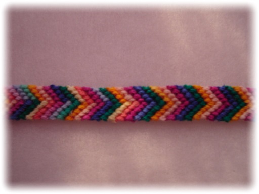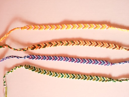久しぶりのミサンガです。ミサンガ作り始めて1年すぎました。また最初にもどってV字模様 まとめて4本