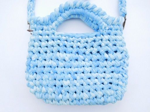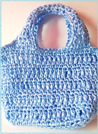 バッグ作りました。3日間で作ったので肩凝った~細編みだけだと大変なので長編みも入れました。材料は梱包用のPPテープです。