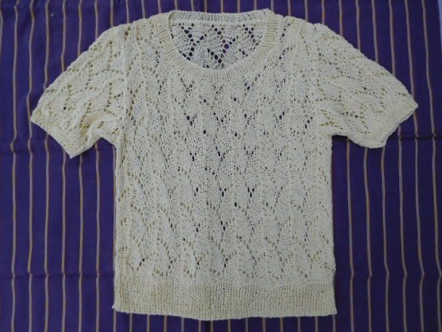 半袖透かし編み出来ました。毛糸は【ポイント10倍★4/23 13時まで】\売れっ子糸/◆NEWコットンベビー【5玉パック】【綿100%/約30g玉巻(約100m)/中細】FZ119/ZAKKA少し余ったので追加購入しました。柔らかく肌触りがいいのでもう1枚作ります。
