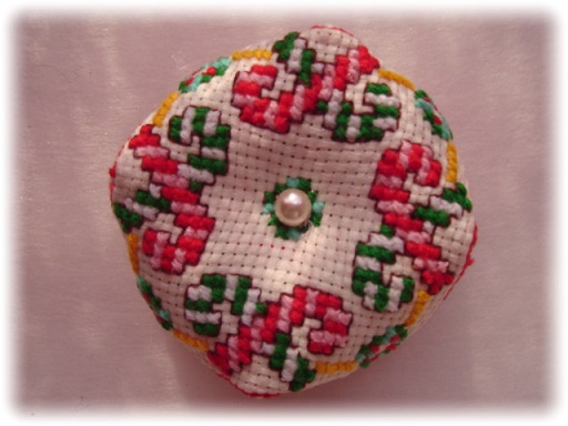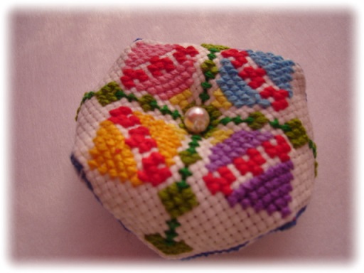 ピンクッションです。ビスコーニュと言うそうです。すごく可愛い 針刺すのもったいない。反対側