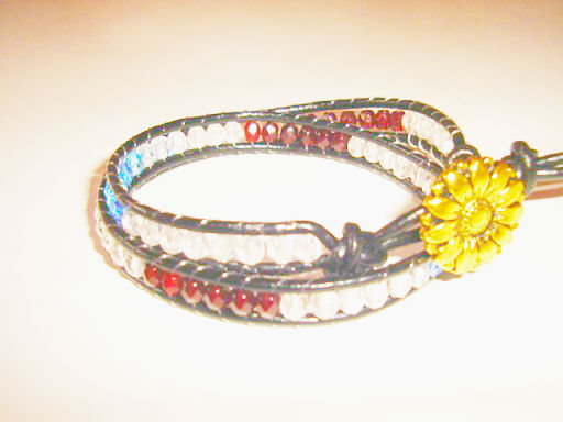 残ってるビーズを整理したくてラップブレスレット作りました えんじ色 と 水色は全部使い切ってしまいました。クリスタルはあと少し残ってる どうしようかなラップブレス用のコンチョボタンをさがしてたら コレ見つけてこっちにしちゃいました。