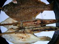 二日目、昨夜あんなに歩いたにもかかわらず元気で、朝食をしっかり食べてから、予定通りに一度は行きたいと思っていた兼六園に向かいました。思っていたとおりの綺麗な庭園でした。(写真は昨日の日記にアップしています。)朝9時だというのにものすごい暑さで、写真を数枚撮ってから11時過ぎには、新潟に向かったのですが、これからの道中があんなに長旅になるとは、この時点では思ってもいませんでした。なので、所々の海水浴場に駐車しては、海の写真を撮ったり、食事をしたりして、ゆっくりと進んでいたのですが、富山県を抜けて新潟県に入った所で既に夕方になったのです。宿泊予約のホテルターミナルアートインは、新潟の駅近くなので遠かったー。それから、少し焦りだして、海岸線を走るのをやめて、ひたすら走り続けましたが、初めての道で真っ暗になってしまったので、道路の案内が見にくくて、迷ってしまったりで、ホテルを探すのにも苦労し、結局電話をしたら、駅の反対側を探していたらしいのです。ホテルについたら11時過ぎで、もう街に出る元気もなくて早々と眠りにつきました。せっかく新潟駅の近くのホテルに泊まったのに、街を歩くこともなく、翌朝、予定通り、海岸線を寺泊、出雲崎へと走りました。寺泊の魚市場には、新鮮なお魚が一杯で、夏でなければ持って帰りたいくらいでしたよ。そして、一番の目的のブログで交流していただいているmarudon3333さんのお店「石井鮮魚店さん」に向かいました。わりとすぐにお店が見つかって、marudon3333さんにお会いできました。ブログを通じて、こうやって出会えたことを嬉しく思います。ずっと長い間、浜焼きガレイを探していたのですが、marudon3333さんのブログに出合って「これだ!」と感激したのです。お店の商品は、marudon3333さんのブログで紹介の石井鮮魚店さんのHPをご覧くださいね。昨日、発送をお願いしていた浜焼きガレイとギスが届いたので、さっそく、3軒のお家に届け、美味しいと喜んでもらえましたよ。もちろん、私も美味しかったー。我が家に残った一部の写真をアップします。もう既に残っていませんが。鱈の親子漬けと岩磯海苔をプレゼントしていただけました。嬉しいー! marudon3333さん、ありがとう!いつも ありがとうございます!夢満腹の楽しいお取り寄せライフTOPへ次は、帰りに見つけた思いがけない美味しい物の話です。