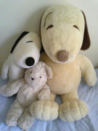 私は、高知では1人暮らしなのに4人(私を含めて)で寝ています。彼らは2年前に紹介しました。前回といっても、もう2年前の話。今も元気にしております。げ・げんきに…た・たぶん… って、スヌちゃん!!もう座る気力なしもたれかかってるし。何回座らせてももうダメ。しかも、でっかいスヌちゃん、眉毛、相変わらずおかしいし。何か生えてる。やばいことになってる。飼い主のバウさん、何もやらず放置してるし。このスヌちゃん、かなりバウって人からいい扱いを受けていないようで激やせしております手術もしてるんです。実は。見た目は2年前とさほど変わってないですが、ボデーが痩せちゃった。ボデーが。しかも、手術も、バウさんって方がバカなもんだから、スヌちゃんが破れた?ときとびでてきた綿を入れずに縫っちゃった。だから、家庭科の成績ずっと悪かったんだよ。だから、家庭科の調理実習、男子にまで『お前はやんなくていい。俺のエアーマックス盗まれんか見張っといて』(当時、エアーマックスが流行って、エアーマックス狩が流行)なんて言われるんだよ。だから、調理実習中に布巾振りまわして、火が燃え移って1人サーカスになるんだよ。だから、ミシンの針、1時間で3本も折るんだよ。ってことで、スヌちゃん、激やせ継続中。見てください。 この寂しそうな顔。スヌーピーじゃなくてマッチマッチでぇ~す♪のマッチじゃなくてマッチ棒のマッチみたくなっちゃった。(・∀・)ヽビックリしてこう耳が・・・Σ(・∀・)3ノ" おっきくなっちゃったそんな感じ。そんな、訳ない。スヌちゃん、ごめんなさい。今日は、いいお天気。早起きした。朝から、いっぱい用事ができていいこともいっぱいあった。優しさもいっぱい感じた。太陽の光、たくさんチャージしよう。早起きのおかげか体の調子がいい。快眠グッズ高知で寝るときの快眠グッズ。 眠りにこだわるあなたへ「枕が香ってほんのり幸せ~♪」楽天ランキング アロマスプレージャンル...価格:2,520円(税込、送料込)もう何本もリピ。あとに残らない香りが心地いい。お気に入りは、リネンフラワーとラベンダーフラワー。 自律神経にやさしい音楽 メンタル・フィジック・シリーズ価格:1,701円(税込、送料別)このCDが1番、落ち着く。心拍数が下がる…ことが多い。これ私の場合。人気ブログランキングへどんなけ家庭科、苦手なんだ?そんなんで嫁にいけるのか?って思われた方、クリックお願いします。