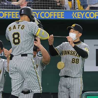 虎党団塊ジュニアさん 佐藤輝明内野手(23)の特大の7号2ランで先制した。3回。青柳が左前打で出て2死一塁となって、巨人菅野の2球目だった。143キロの高めの直球を完璧に捉え、右翼バルコニー席まで運ぶ推定130メートル弾。