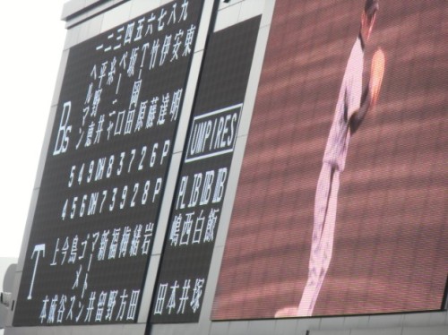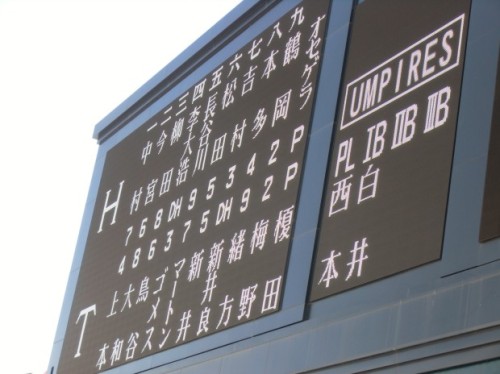 交流戦5勝8敗ともう一つ調子に乗りきれないタイガース今日はパリーグ首位のオリックスとの試合<スターティングメンバー>先発は4勝1敗と結果を出している岩田投手。オリックスは1勝0敗の新人の東明投手。<今日は浜風でなく、ホームラン風>いつもの浜風でなくホームラン風なので、長打がたくさんでるのか??3回までパーフェクトピッチングの岩田投手。後ろに座っている兄ちゃんが「今日は完全試合するんちゃうかー」と言ってた矢先に・・・<完全試合しそうな岩田投手>4回、元タイガースの平野選手にセンターオーバーのツーベースを打たれた後、連続四球で満塁。急に怪しくなってきたぞー坂口選手の内野ゴロの間に1点先制され、T-岡田の内野安打で更に1点。4回にも2点追加され4-0阪神打線は新人の東明投手からヒット1本のみ。5回裏に9番の緒方が左中間にホームラン<プロ入り初のホームラン>しかし、この後オリックスは6回岸田投手・7回馬原投手・8回佐藤投手・9回は平野投手と完璧なリレーで1-4で負け以前の阪神のJFKより1枚多く6回から勝ちパターンに持ち込むんか~そらー強いわけやわーと言ってる場合でなく、明日のソフトバンク戦ではほんま勝って欲しい!!!