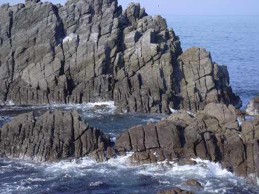 お天気に恵まれた2日間海から吹く強風が と~っても心地よくて暑さを吹き飛ばしてくれました今回は岩場ばかり歩いていたのでかなり運動した気分 目的地はこんなところ : 磁石岩のある島 < 雄島 > 磁石岩 磁石岩に方位磁石を近づけてみると : 北は画面右側なんだけど・・・ 磁石岩は写真の上の林から出た所にあります 岩場をどんどん降りていきますこの黄色い○印のあたりが今回の釣り場でした 強い海風に波しぶきが上がり・・・しぶきが上がり・・・ この写真を撮った後 足元にしぶきがかかっちゃった こんな光景や・・・ 波が島に沿って走る波が走る・・・岩には小指の爪の半分ほどの 小さな貝たちがいっぱい 島に入ってすぐに この石段を登って林を通り抜け 岩場へと降ります釣道具を持って休まずに一気に石段を登り切ったので石段を数えていたのに 最上段に着いたとたん酸欠で数を忘れちゃってね降りるときに数えなおしました (^_^;)78段でした こんな林を通り抜けます日没までいると怖そうな島なので早めに切り上げました神の住む島なんだってさ 夕暮れの 雄島橋 ( おしまばし ): 島側から撮った写真この4~500mの橋を歩いて渡って島に入りますきれいな夕陽で・・・ずっと見入っていました宿では食べきれないほどの夕食うれしい温泉宿に泊まると最低3回の入浴この夜も23時頃に お風呂を独占しようと思ったら先客がひとり・・・残念だったな と思いながら中に入ると誰もいない脱衣カゴあったのは忘れ物 (^_^;)でも翌朝にはなくなっていましたよきれいな夕陽を見たあとは満月を過ぎた月夜月のとなりには明るい星がひとつ窓から見える月と星が少しずつ空を移動していくのを波の音を聴きながら ずっと見ていました 続く・・・