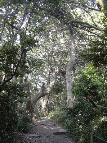 続きです翌朝はもう一度 雄島を訪れました前日はまっすぐに釣場へ向かったのでゆっくり見ていなかったからね こんな木ばかりの間に道が作られています木々を見上げると 葉がジグソーパズルの様 光をうまく分け合ってるね大湊神社 : 島全体がここの鎮守の森になっているようです周囲2キロの島を40分ほどで一周して 島をあとにしました続いて向かったのは 東尋坊訪れたのは2回目か3回目東尋坊入り口より雄島を望む : 雄島 と 雄島橋東尋坊 : 相変わらず海に吸い込まれそうな高さです風がとっても強く 両手を広げて飛び出してしまいそうな気分遊覧船で海から眺めることもできますが パス東尋坊は前に訪れたときよりも狭く感じましたここも古くからの観光地なので東尋坊タワーは廃れていましたがたくさんの露店が狭い通路を埋め尽くしています東尋坊から再び雄島方面に戻るようにして越前松島へ越前松島 : ○印まで登ってきました前の写真の○印の場所から撮った写真です越前松島 : 階段に見えるけど階段ではないよ 自然の節理観音堂 : 松島三洞穴のひとつ もと横穴住居跡らしい洞穴内には観音菩薩が祭られています柱状節理 板状節理越前松島のとなりには水族館がありますそこも古くからあって かなり老朽化していますが大勢の人で賑わっていましたおまけ : 毒ガエル人混みは嫌いなので 早々に引き上げて帰路につきました