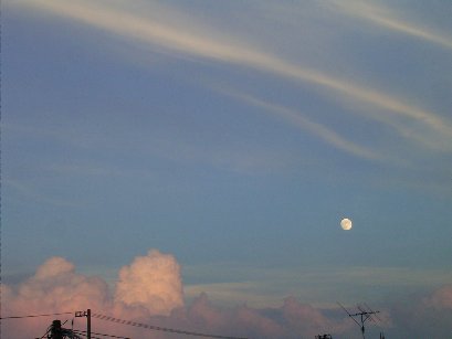 猛暑日が続いていますね朝のうちの29℃が涼しく感じました頭のフワフワ症状も治まり涼しいうちに諸事を片付けようと朝から慌しく動いていましたやっぱり貧乏性ですね~午後から お気に入りアーティストの新しいCDを聴いていましたフィーリングの合う音楽って癒されますね今更ですが・・・ しみじみ感じます暑さのせいかご飯モノがあまり喉を通らなくなりました 夕飯のメニュー ・ 炊き合わせ ( ミニがんも ミニ厚揚げ しいたけ ふき ) ・ サケのムニエル ( レタス トマト ゆでたまご ) ・ しめじのピリ辛炒め ( しめじ しらたき 切りあげ 白ごま ) ・ みそ汁 ( わかめ じゃがいも ) ・ ごはん ・ メロンココ ( メロン ナタデココ )≪ おまけ ≫夕方の月と雲