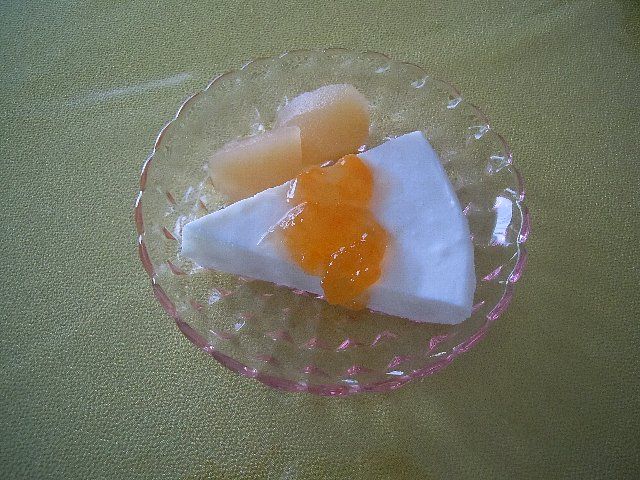 ゆうべから12日ぶりに雪が降り今朝の積雪量は前回とほぼ同じ15センチほどですが水分を多く含んだ雪質で重く朝のうちの除雪といえど軽くはありませんでした除雪跡がデコボコしていたりシャーベット状で残すと凍った時に厄介なので少しでも雪が少ないうちに除けておかないとねでも午後は雨になって骨折り損で身体のあちこちに痛みが出てきそう (^-^; ☆ ☆ ☆コンベクションオーブンを撤去して以来何年振りかで一昨日ケーキを作りましたといっても焼く必要のない レアチーズケーキ ですけどねオーブンがあった頃はケーキの土台のビスケット地も焼いていましたが今回は土台もなく 低脂肪 の食材を使った点が大きな違いで脂肪0のヨーグルト と低脂肪の カッテージチーズ を使っていますチーズケーキはクリームチーズの滑らかさがポイントなのでペースト状のカッテージチーズが欲しかったのですが近隣の店にはなくて仕方なく普通のカッテージチーズを裏ごしするという手間がかかりました手持ちのケーキの型枠は大きなものしかなく代用になる形の器もなくその型枠を使ったので1ピースが大きく厚みは薄くなりました ( 当然だ )アプリコットジャム をのばしたものと リンゴのコンポート を添えましたチーズを裏ごしたとはいえ少々の粒つぶ感が残ったのはご愛敬でチーズケーキというより少し固めのムースみたいな感じの仕上がりでした裏ごし作業とメレンゲ( 泡立てた卵白 )作りで腕が疲れました (-_-)電動の泡立て器もミキサーもちゃんと持っているのですがたまにしか使わないので収納してあるため結局は面倒で使わないんですよねぇ ( 笑 )
