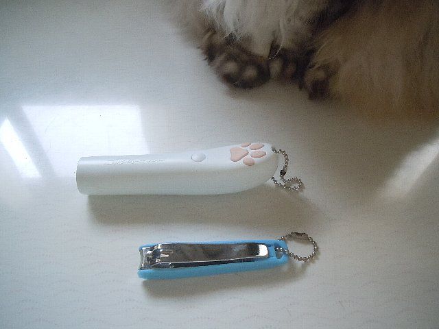 何でもないことで思わぬ不便を強いられています長年使っていた爪切りのカバー部分が壊れてしまいとりあえず手持ちのものを出してきましたお泊りグッズの袋の中に入れていた小さめの爪切りですが写真のように短めのチェーンが付いていますこれがまずかった爪切りの上にあるのはネコ用おもちゃの LEDニャン光線ピンポントで赤い光がネズミの形を映し出すのですがネコはネズミの形よりも光に遊びますこれが大好きで置き場所から自分で持ち出すことがあるほどですそして偶然にもこれにも爪切りと同じチェーンが・・・だからネコは爪切りも同じ遊びができると思い込んでいるのですこっちはただ爪を切りたいだけなのに爪切りにそっと触れただけでネコは隣の部屋からでも走ってきます どんだけ聴力が良いんじゃ (^-^;今では遊んでもすぐに息が切れて休んでしまうくせに何度でも光線で遊んで欲しがるのは下の写真のように腕時計に太陽光を当てて遊ばせていたのがそもそもの始まりです2011年:うちに来て2か月の頃今でも部屋に朝陽が射しこむとスピーカーの上でスタンバっています