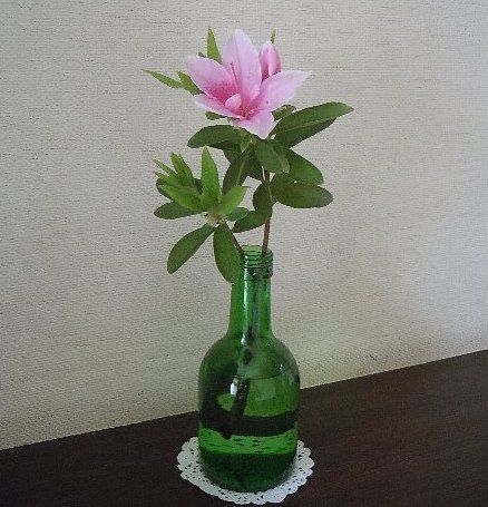 外は初夏の陽気で風がさわやかです室内は少々肌寒く感じて陽気に誘われて庭に出ました庭に出る = 草むしり 連休はこういう生活スタイルになりそうですお天気が良いと室内では落ち着きませんからね本当は雨の方が落ち着いて好きなんだけど・・・ (^-^;日本酒の空瓶ですが安定感があるので つい一輪挿しにしてしまいます