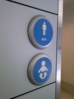 先月、カリフォルニアに行った時に思ったのですが、どこの男性用トイレにも、おむつ換えシートがありました。